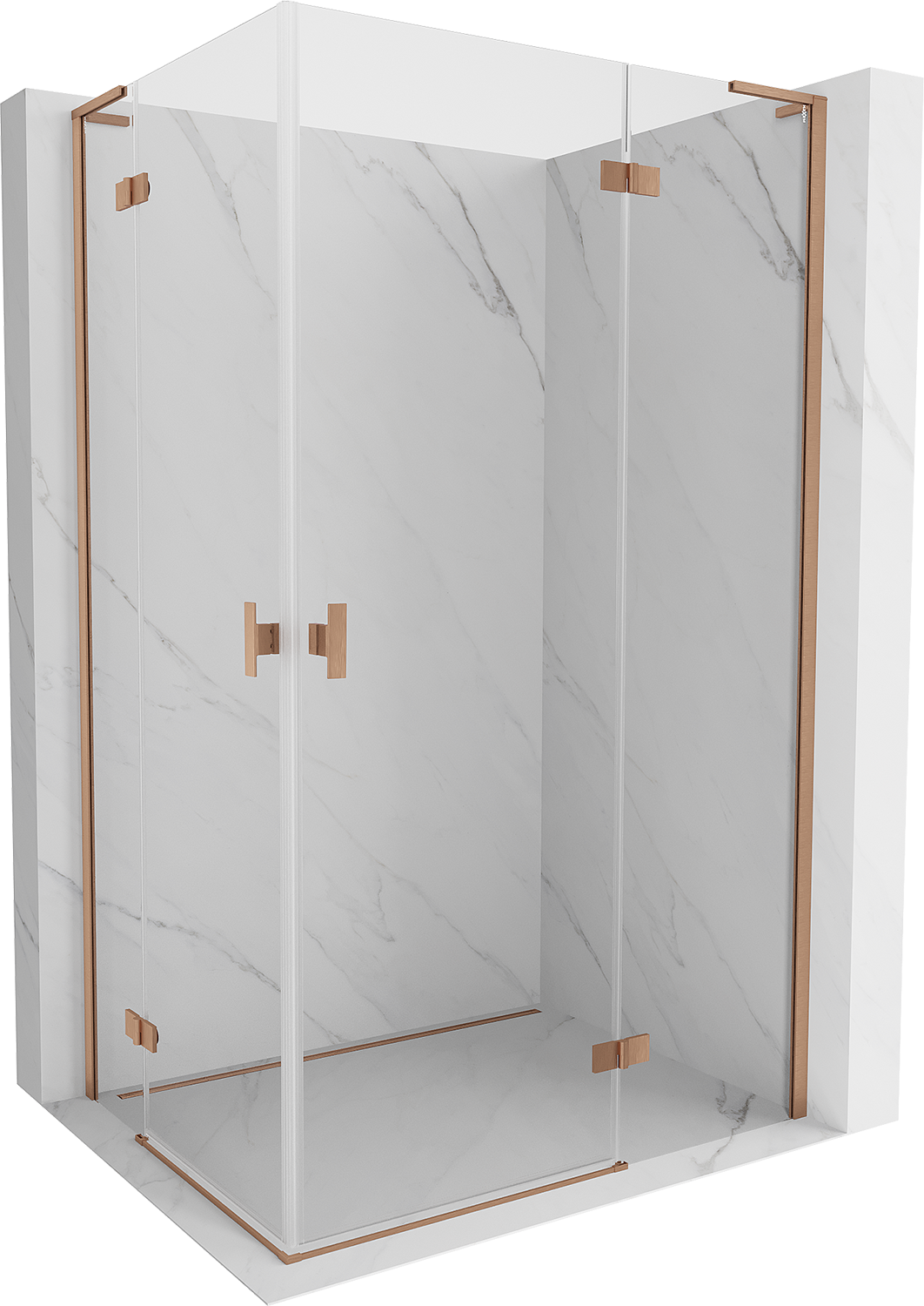 Mexen Mist-H L Duo kääntyvä suihkukabiini oikea 75 x 100 cm, läpinäkyvä, harjattu kupari - 8A5L-075L-100P-65-00