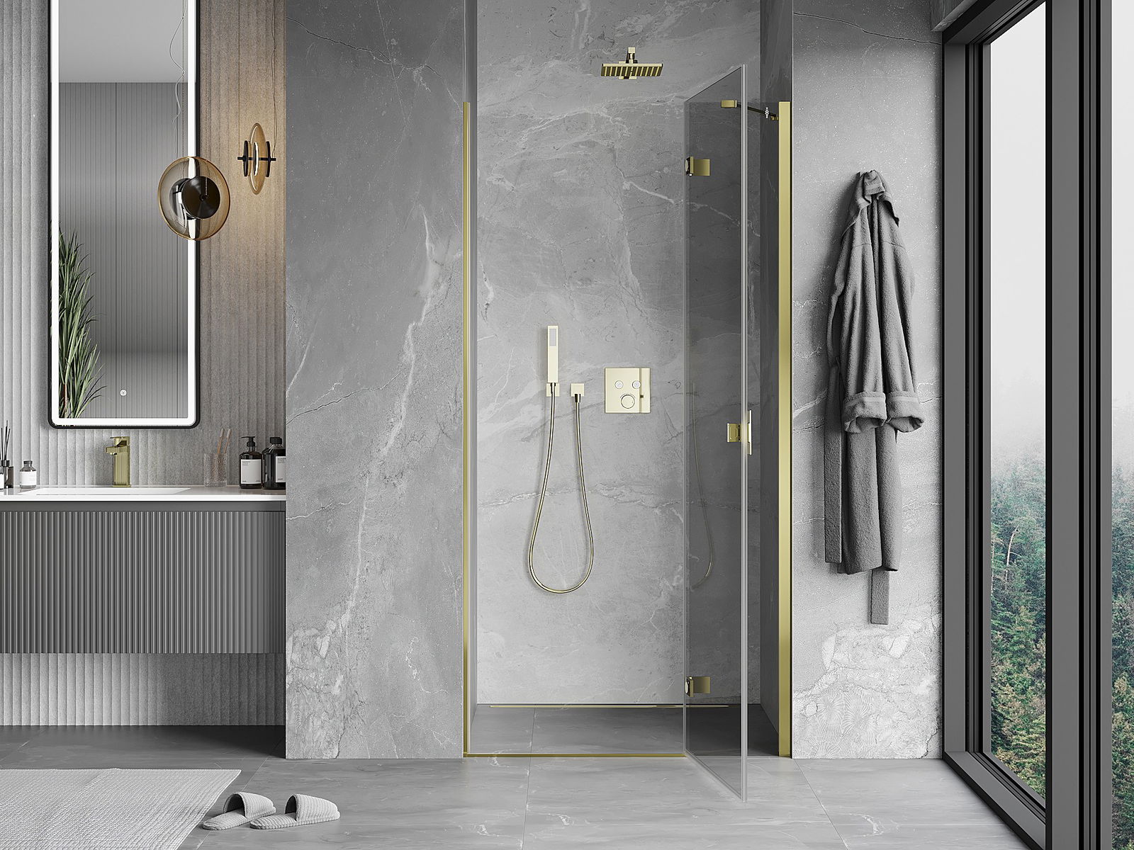 Mexen Mist-H oikeanpuoleinen saranoitu suihkuovi 70 cm, läpinäkyvä, kultainen - 8A5-070-000-50-00-P