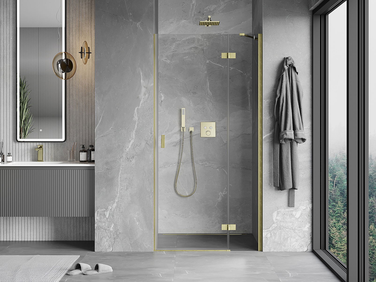 Mexen Mist-H oikeanpuoleinen kääntyvä suihkuovi 120 cm, läpinäkyvä, harjattu kulta - 8A5-120-000-55-00-P