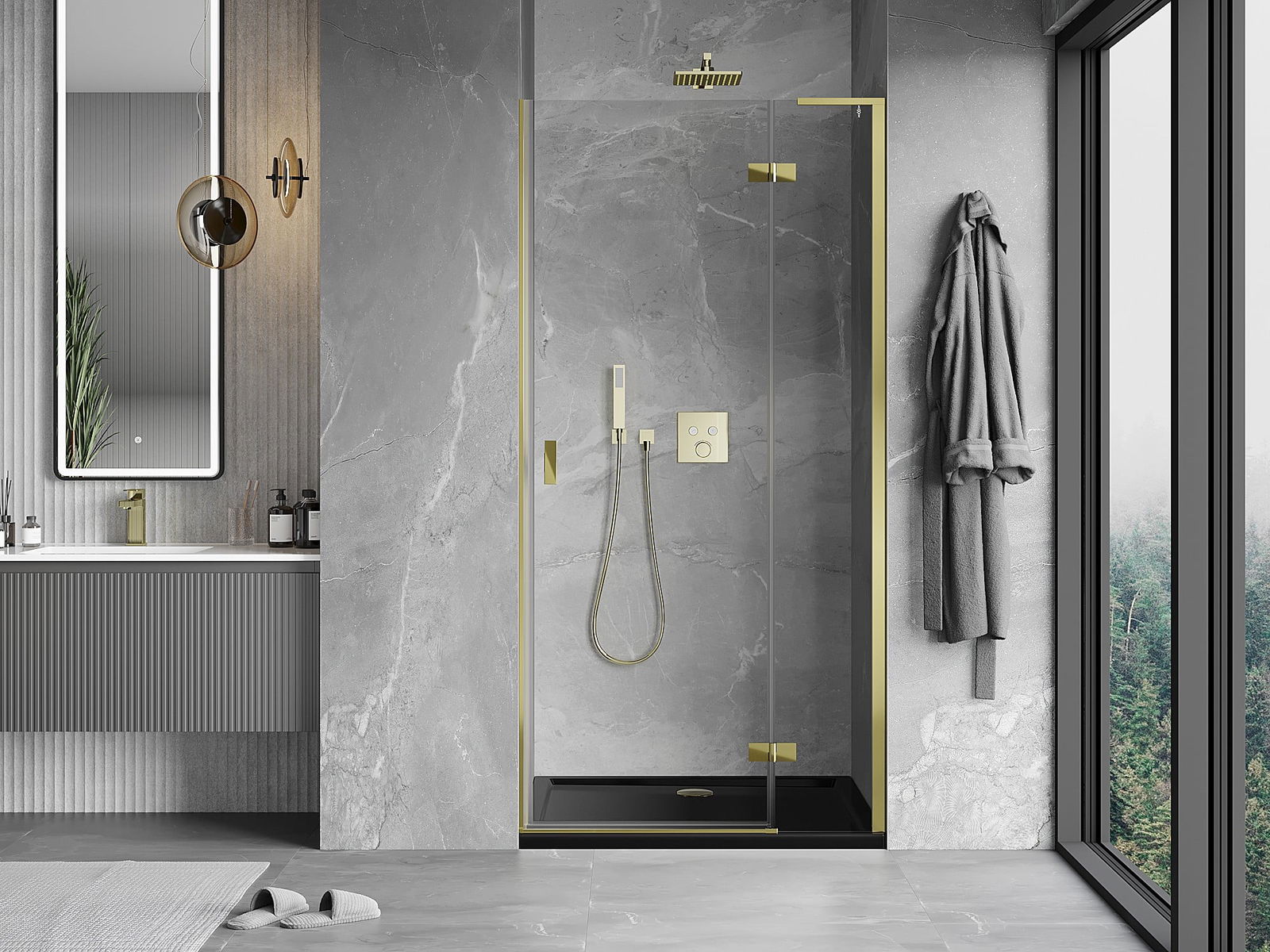 Mexen Mist-H L oikeanpuoleinen kääntyvä suihkuovi 100 cm, läpinäkyvä, kultainen - 8A5L-100-000-50-00-P