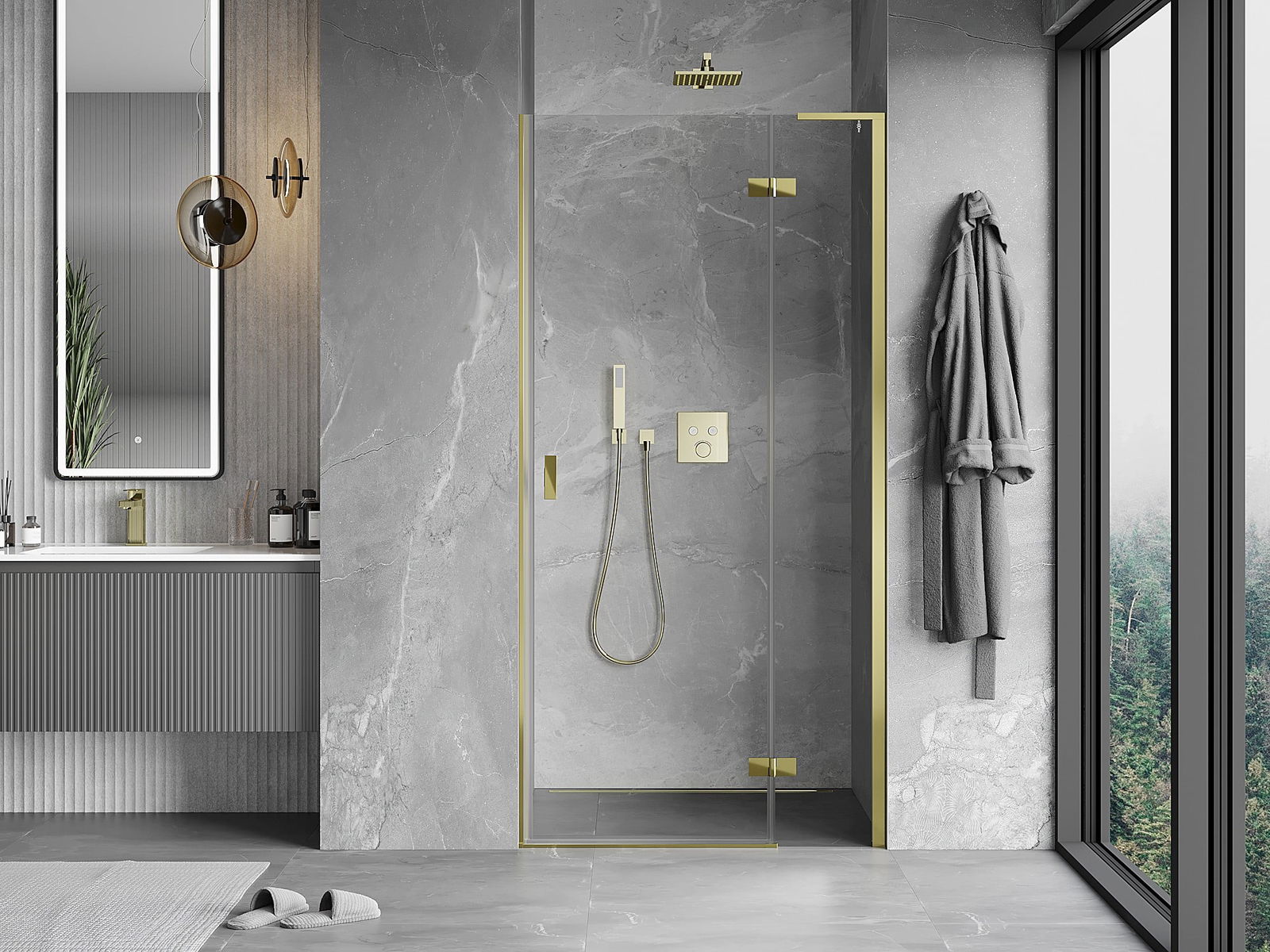 Mexen Mist-H L oikeanpuoleinen kääntyvä suihkuovi 120 cm, kirkas, kultainen - 8A5L-120-000-50-00-P