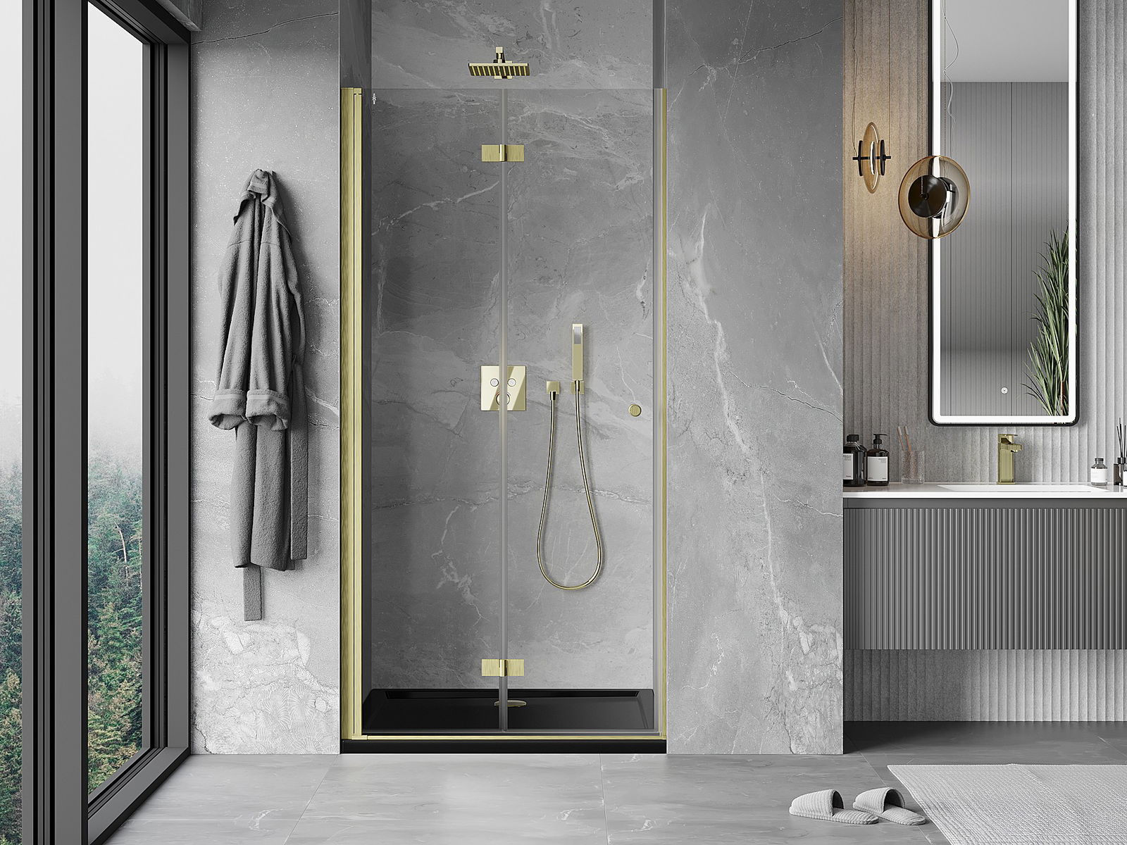 Mexen Mist-F taitettavat vasemmanpuoleiset suihkuovet 120 cm, läpinäkyvä, harjattu kulta - 8A6-120-000-55-00-L