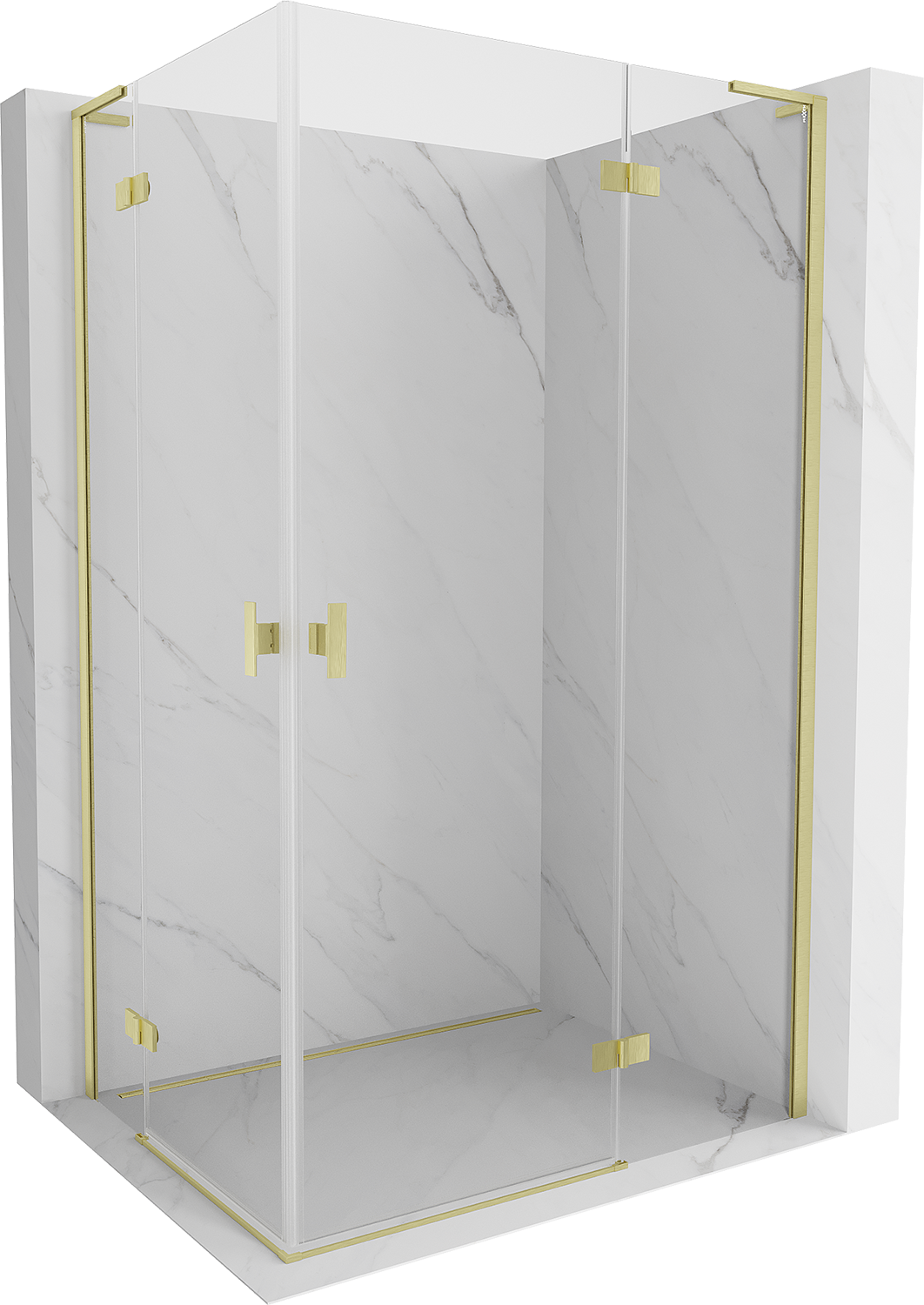 Mexen Mist-H L Duo avautuva suihkukoppi oikea 90 x 105 cm, läpinäkyvä, harjattu kulta - 8A5L-090L-105P-55-00