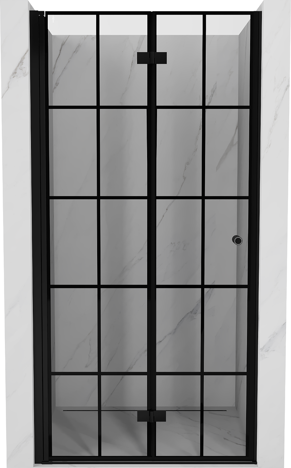 Mexen Mist-F taittuva suihkuovi vasen 85 cm, musta ruudukko, musta - 8A6-085-000-70-77-L