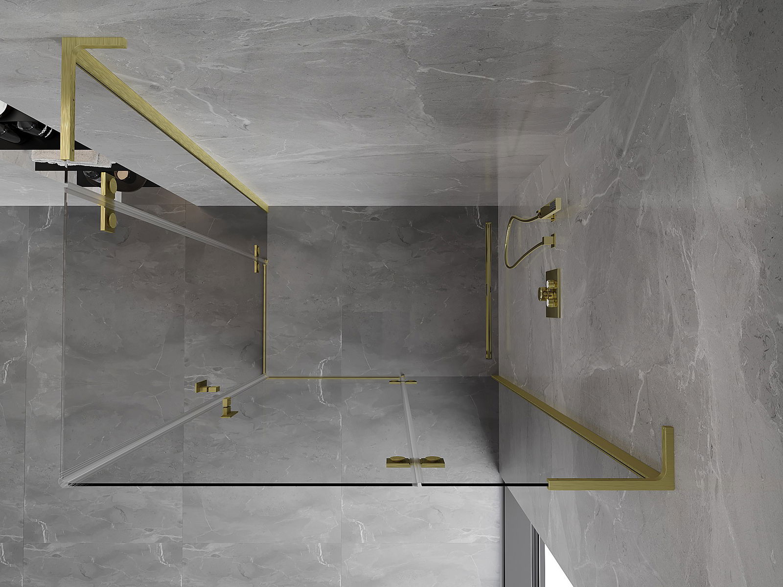 Mexen Mist-H L Duo oikeakätinen kääntyvä suihkukaappi 105 x 120 cm, läpinäkyvä, harjattu kulta - 8A5L-105L-120P-55-00