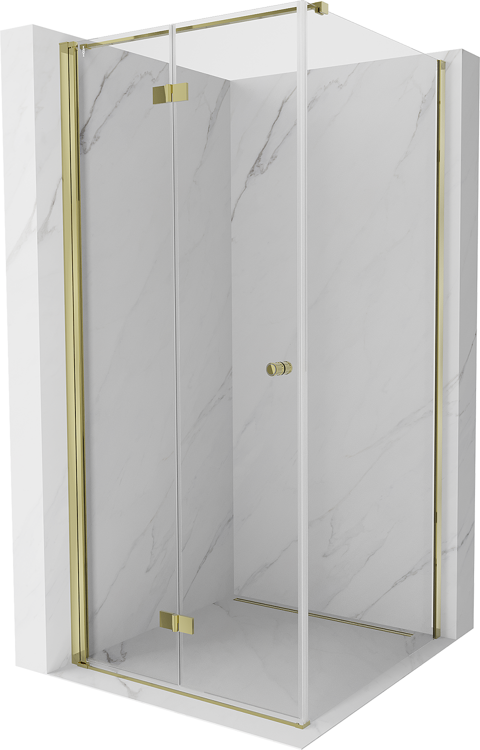 Mexen Mist-F taitettava suihkukaappi vasen 80 x 80 cm, läpinäkyvä, kultainen - 8A6T-080-080-50-00-L