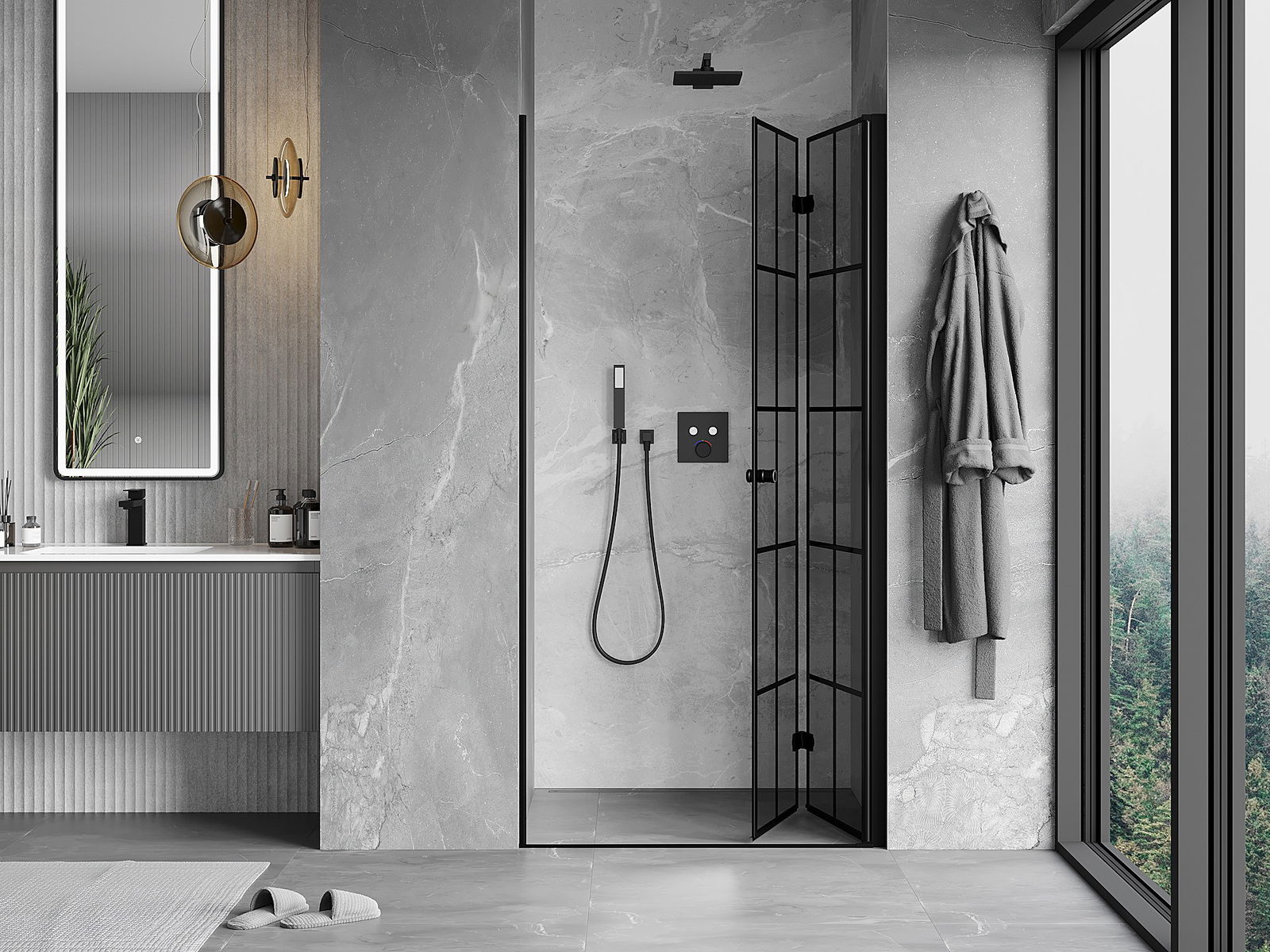 Mexen Mist-F taitettavat suihkuovet oikea 120 cm, musta ristikko, mustat - 8A6-120-000-70-77-P