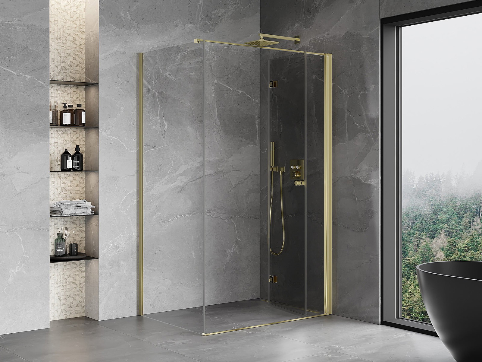Mexen Mist-F taittuva suihkukabiini oikea 70 x 80 cm, läpinäkyvä, kulta - 8A6T-070-080-50-00-P
