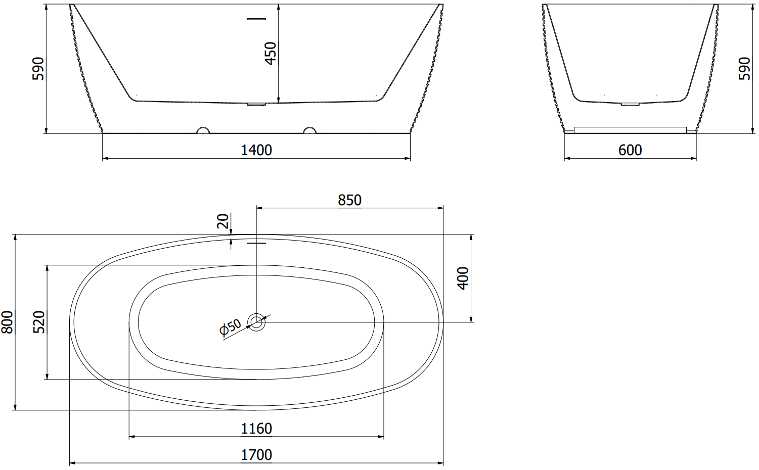Koko: 170 x 80 cm
