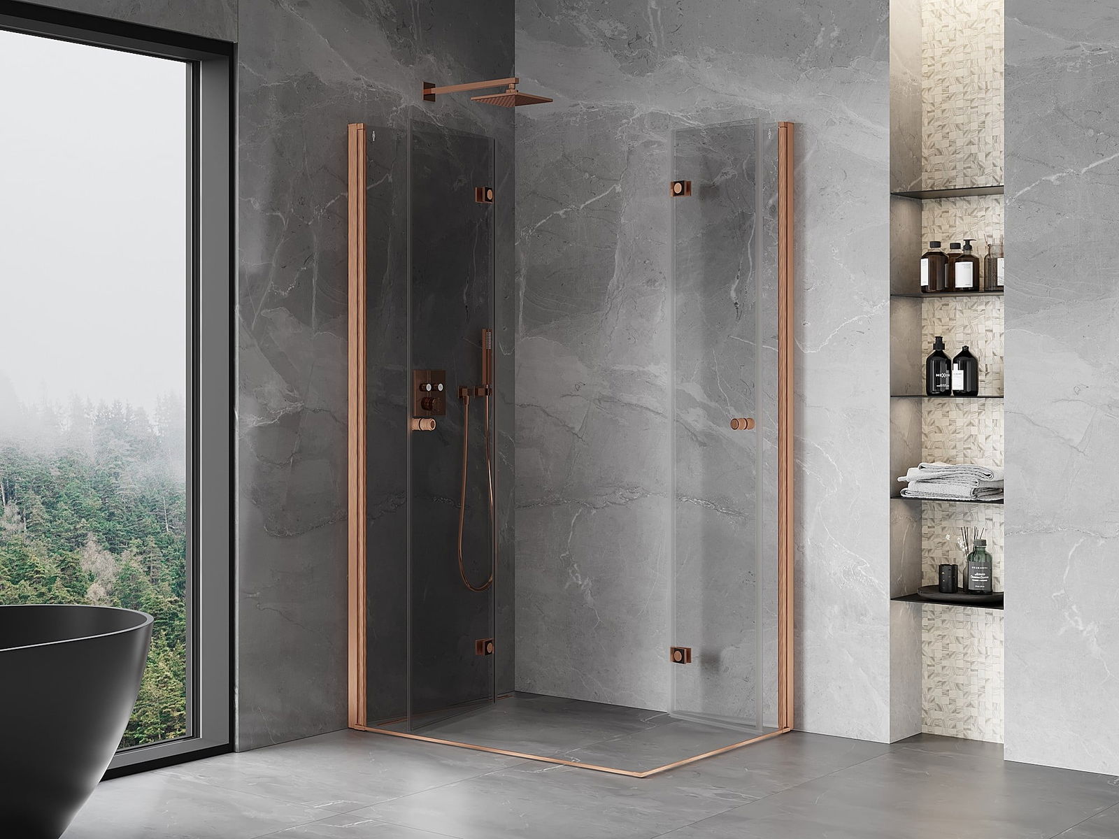Mexen Mist-F Duo taitettava suihkuseinä vasen 100 x 75 cm, kirkas, harjattu kupari - 8A6-100L-075P-65-00
