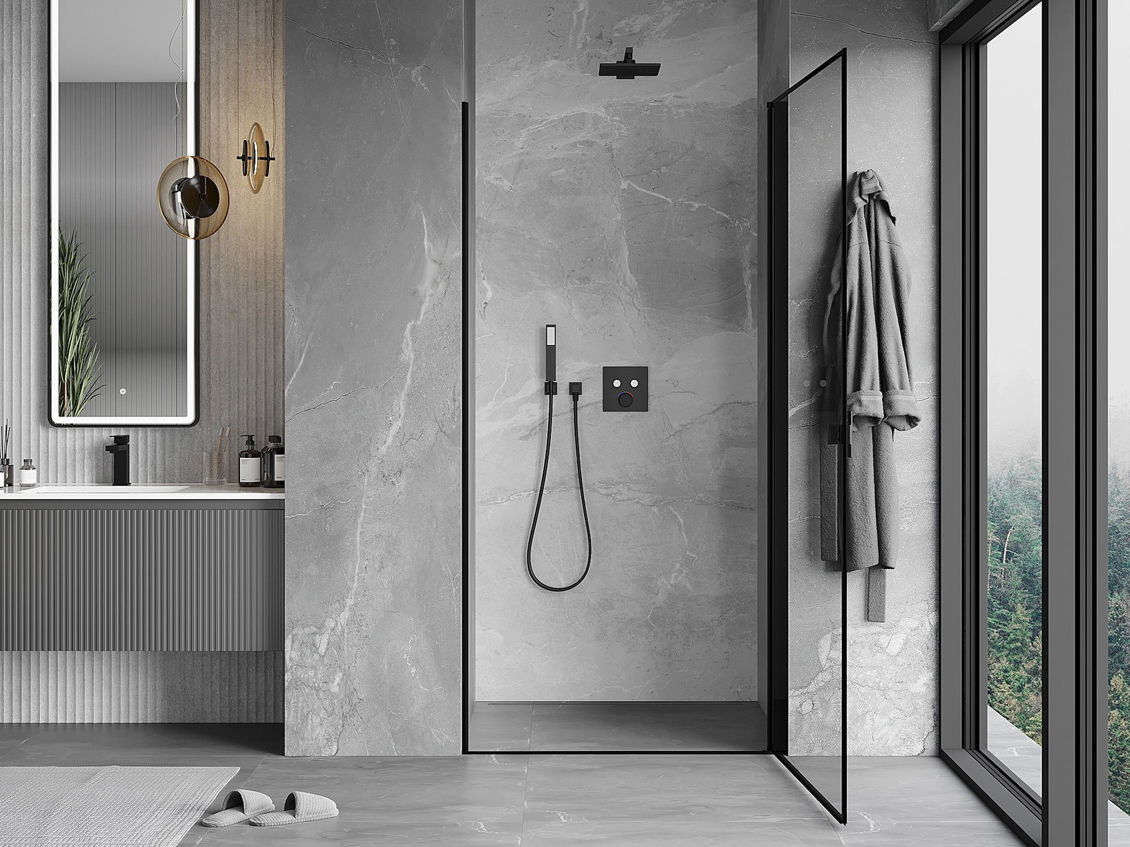 Mexen Mist-B kylpyhuoneen saranalliset ovet oikea 70 cm, musta kehys, mustat - 8A2-070-000-70-70-P