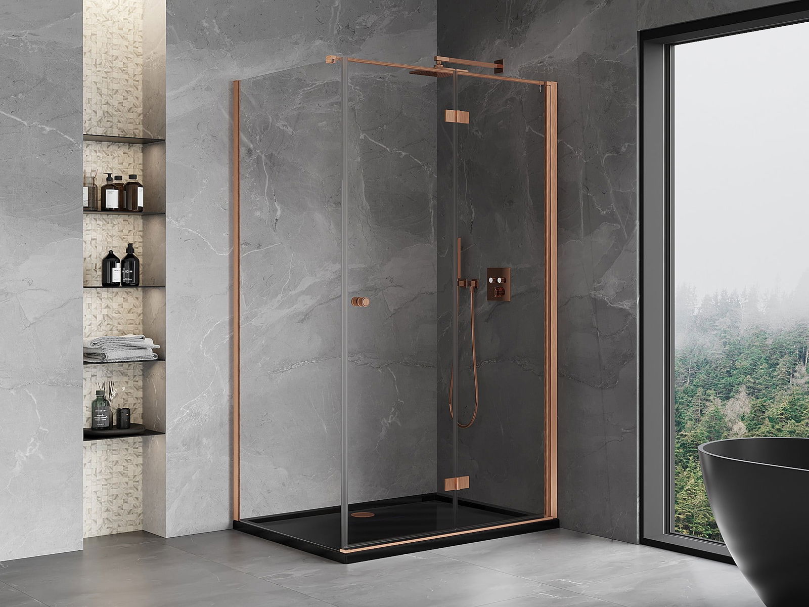 Mexen Mist-F suihkukoppi kokoontaitettava oikea 70 x 110 cm, läpinäkyvä, harjattu kupari - 8A6T-070-110-65-00-P