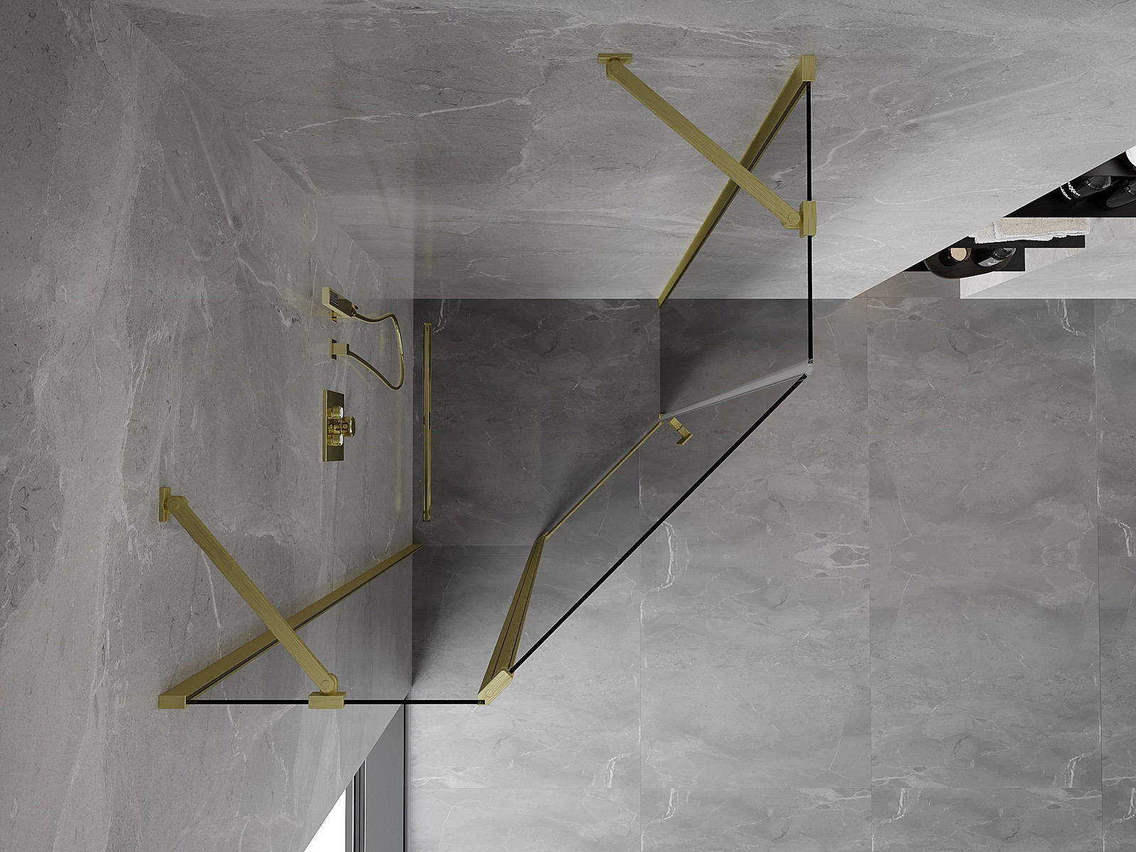 Mexen Mist viisikulmainen käännettävä suihkukaappi 80 x 80 cm, kirkas, harjattu kulta - 8A8-080-080-55-00