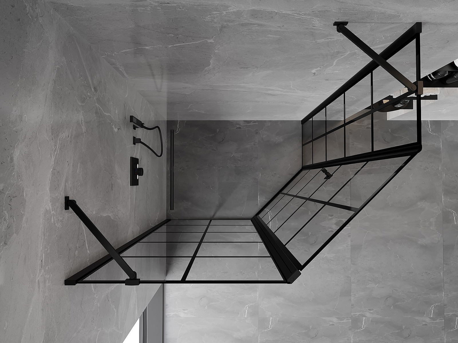 Mexen Mist epäsymmetrinen viiden kulman suihkukaappi vasenkätinen 100 x 80 cm, musta ruudukko, musta - 8A8-100-080-70-77-L