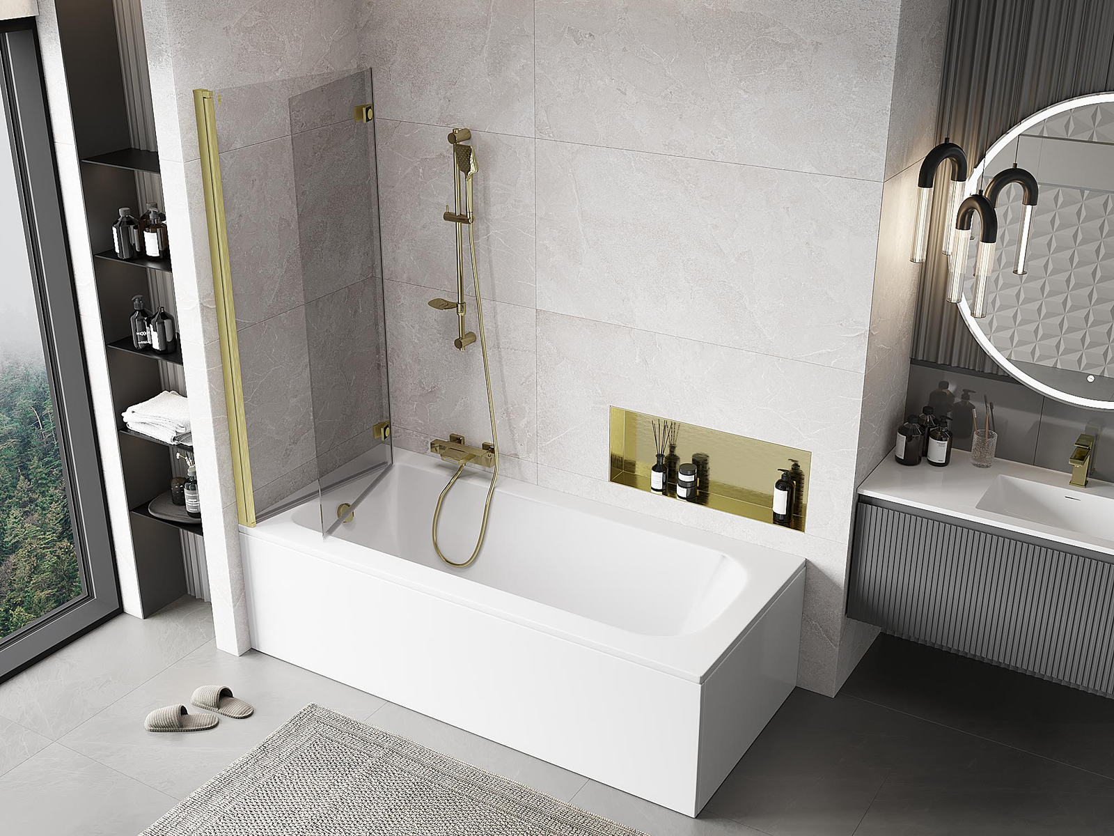 Tehokas suoja veden roiskumiselta kylvyn aikana. Sermi sisältää tiivisteitä, jotka sopivat täydellisesti lasipintaan ja kylpyammeen reunaan. Toiminnallinen ratkaisu, joka takaa turvallisuuden ja helpon puhtaana pidon.