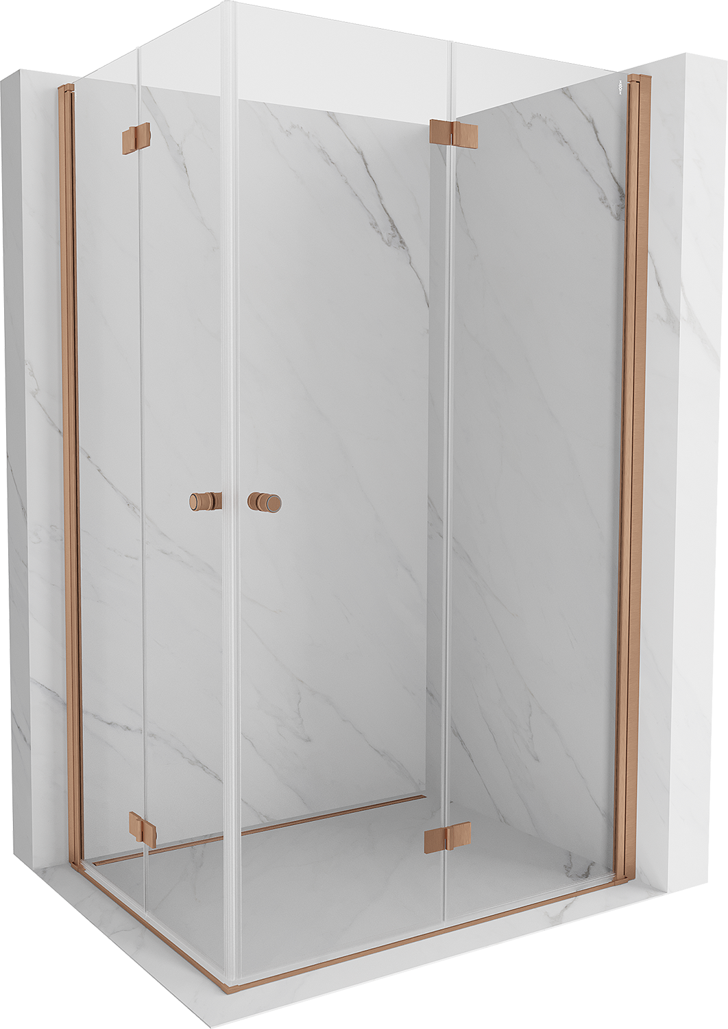 Mexen Mist-F Duo taitettava oikeanpuoleinen suihkukoppi 85 x 120 cm, läpinäkyvä, harjattu kupari - 8A6-085L-120P-65-00