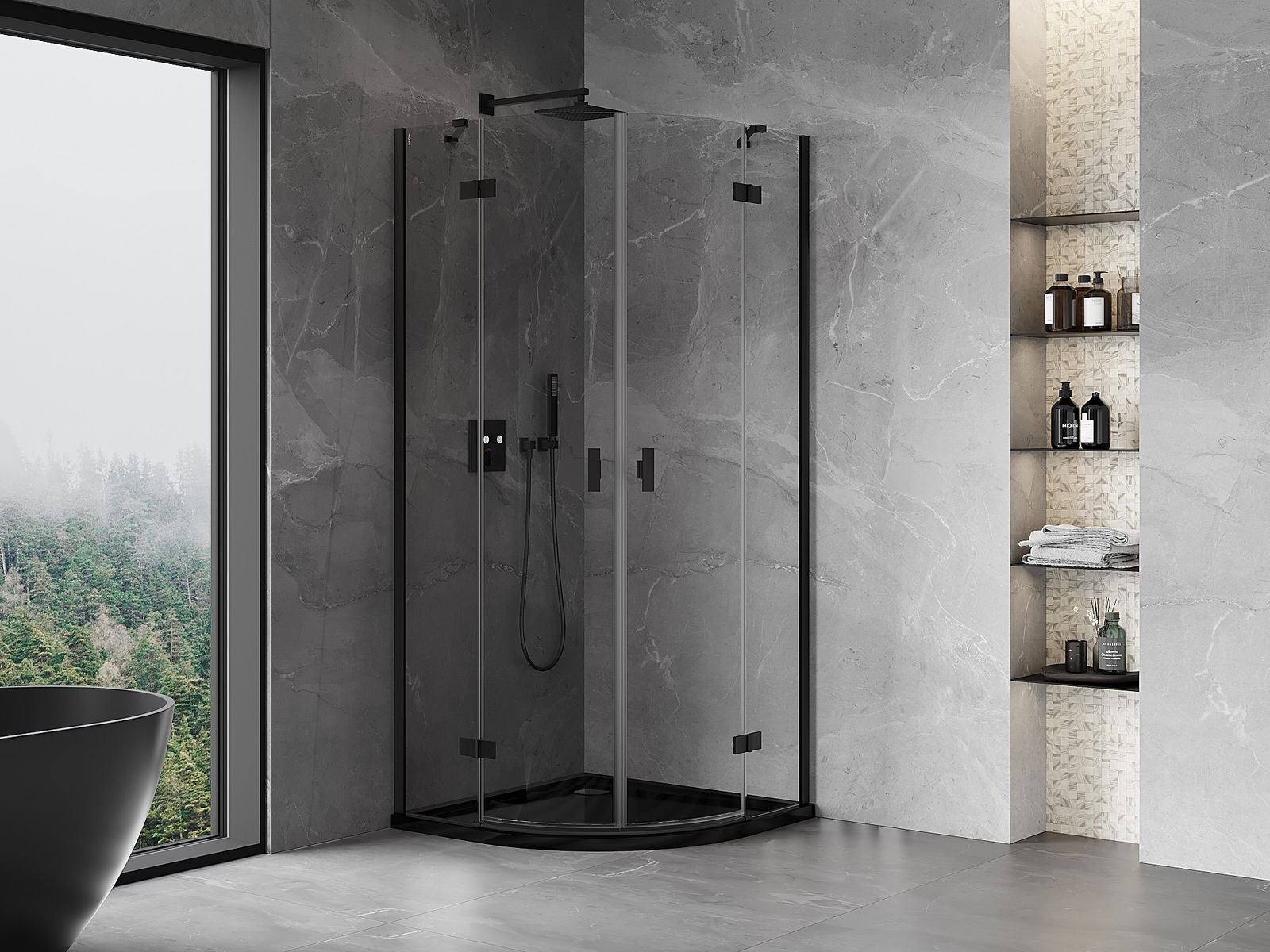 Mexen Mist puoliympyrän muotoinen suihkukaappi, kääntyvä 90 x 90 cm, läpinäkyvä, musta - 8A33-090-090-70-00