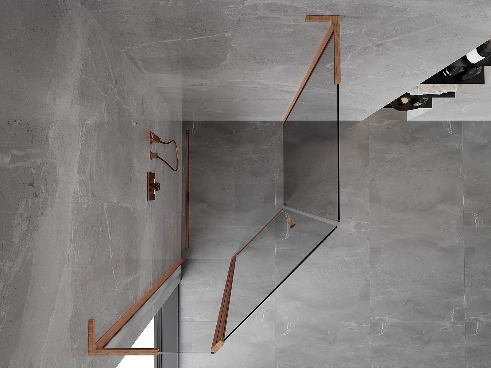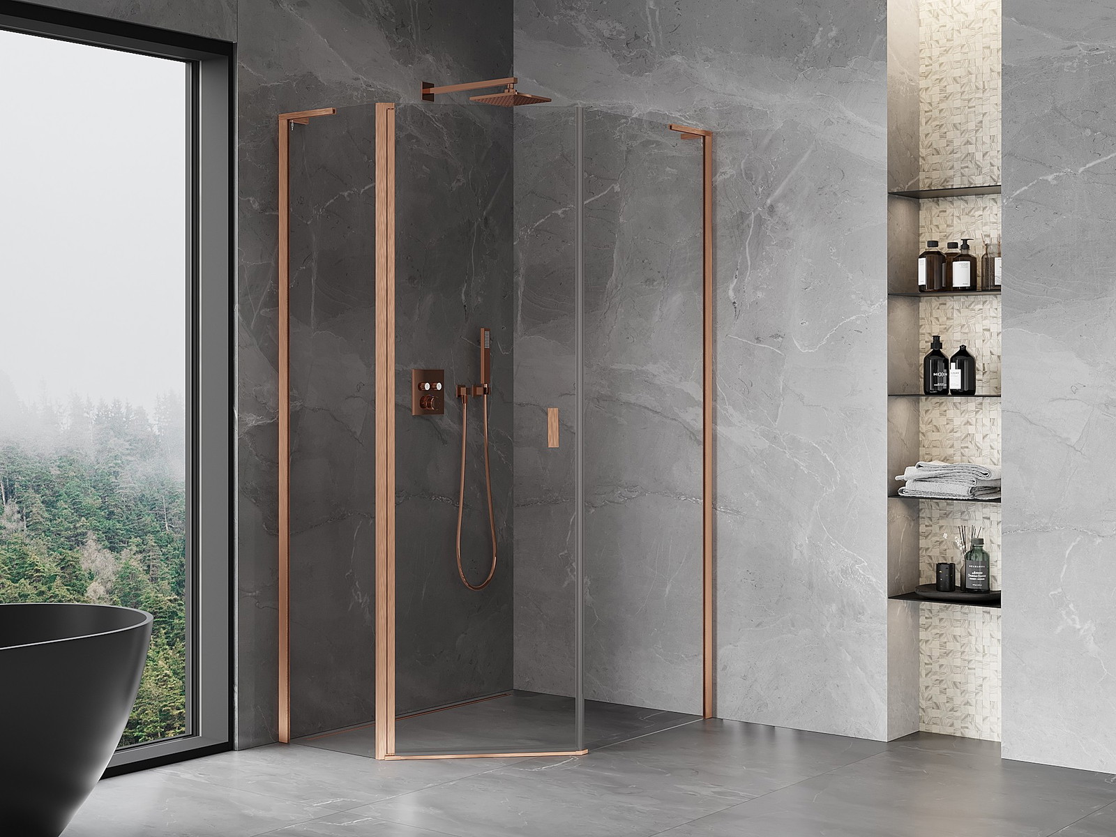 Mexen Mist L epäsymmetrinen, viisisivuinen suihkukoppi, kääntyvä ovi 90x100 cm, kirkas, harjattu kupari - 8A8L-090-100-65-00