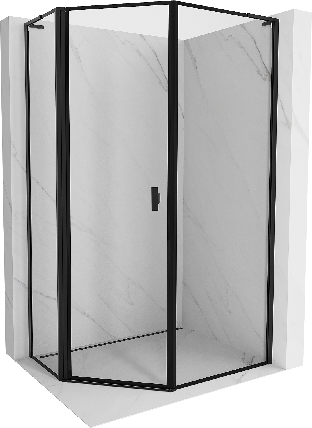 Mexen Mist L epäsymmetrinen viisisivuinen suihkukaappi saranoitu vasen 90 x 100 cm, musta kehys, musta - 8A8L-090-100-70-70-L