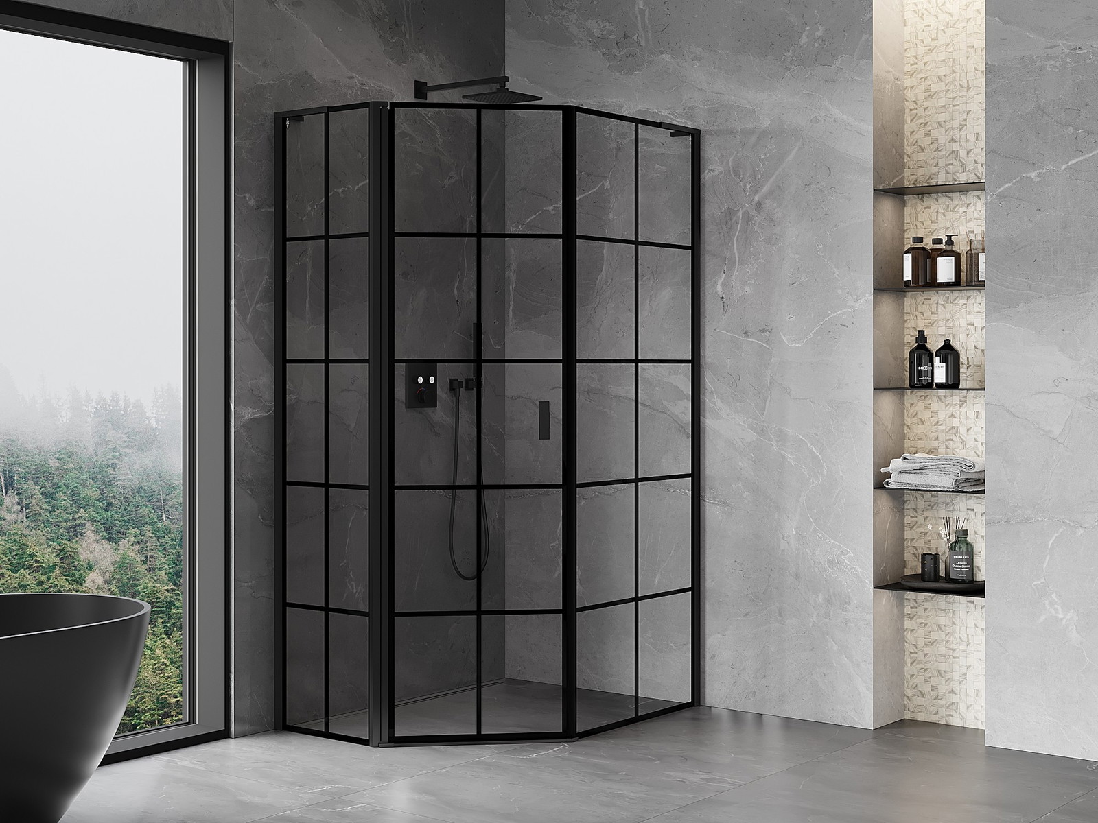 Mexen Mist L asymmetrinen viisisivuinen suihkukoppi, vasenkätinen 80 x 90 cm, musta ruudukko, musta - 8A8L-080-090-70-77-L