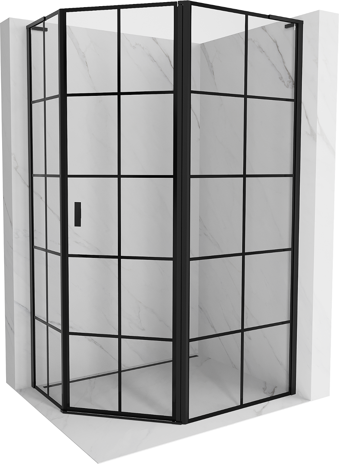 Mexen Mist L asymmetrinen oikeakätinen viispintainen suihkukaappi 90 x 80 cm, musta ruudukko, musta - 8A8L-090-080-70-77-P
