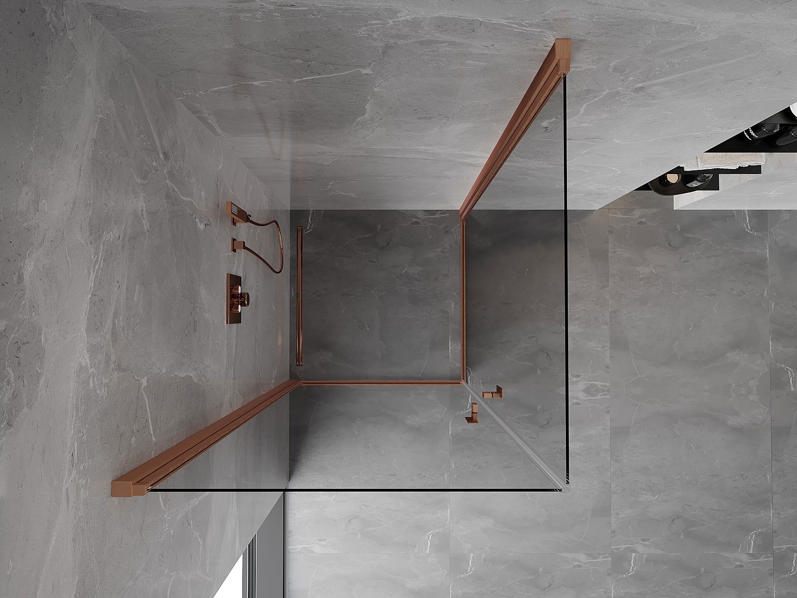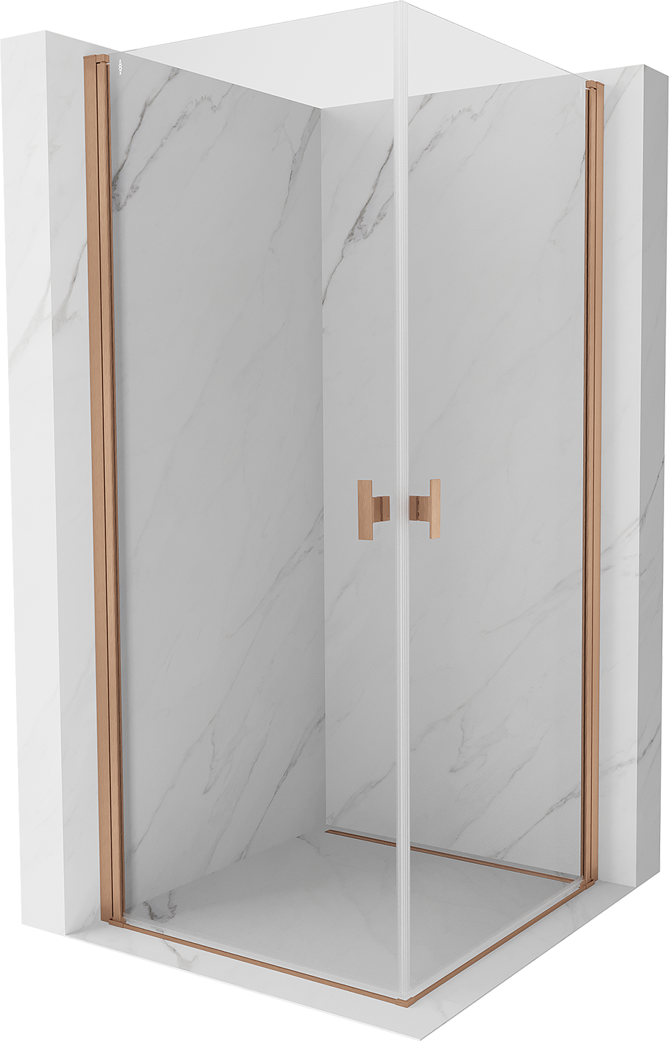 Mexen Mist-B Duo kääntyvä suihkukabiini 85 x 85 cm, läpinäkyvä, harjattu kupari - 8A2-085-085-65-00