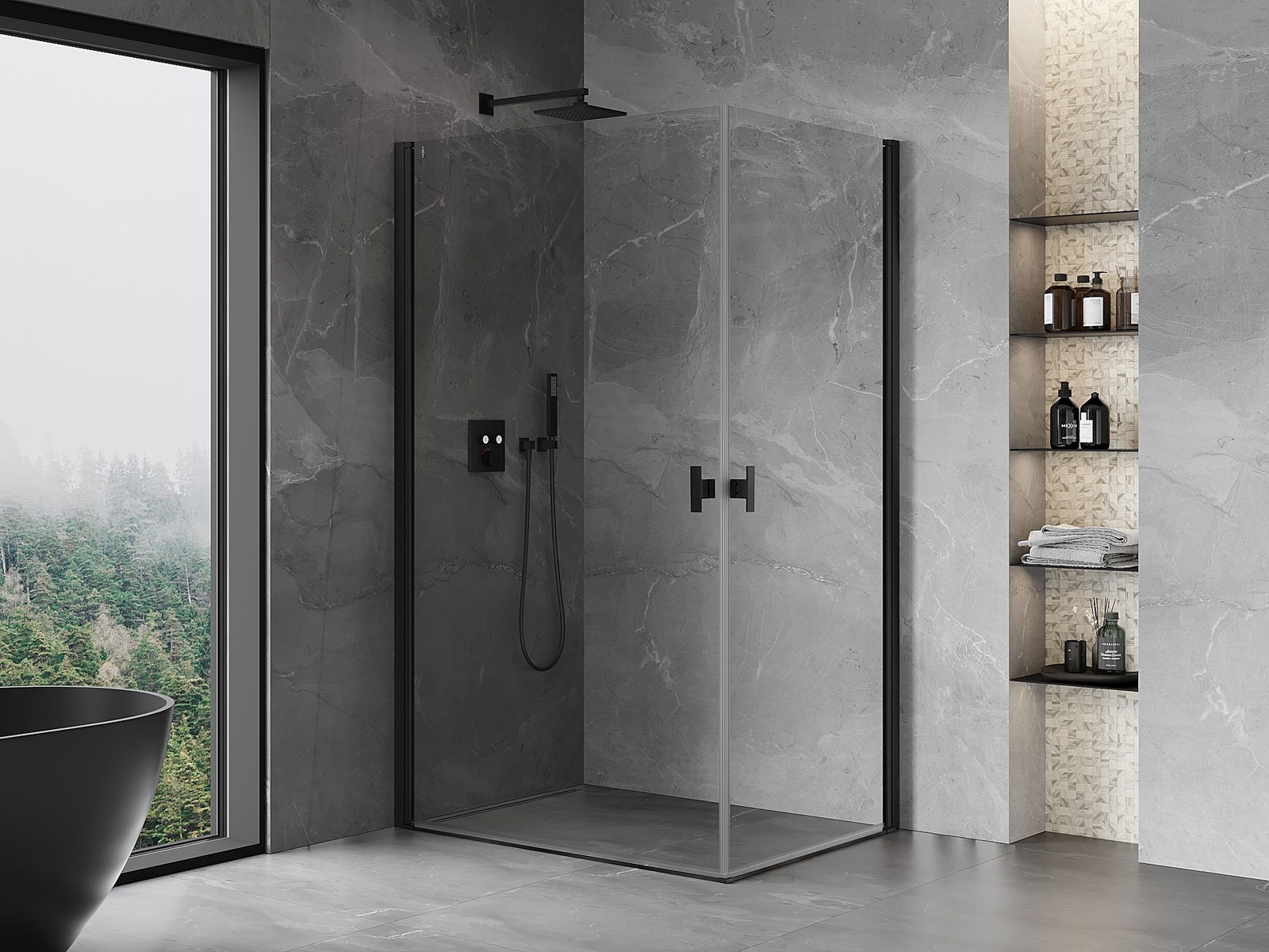 Mexen Mist-B Duo kääntyvä suihkukoppi 95 x 70 cm, läpinäkyvä, musta - 8A2-095-070-70-00