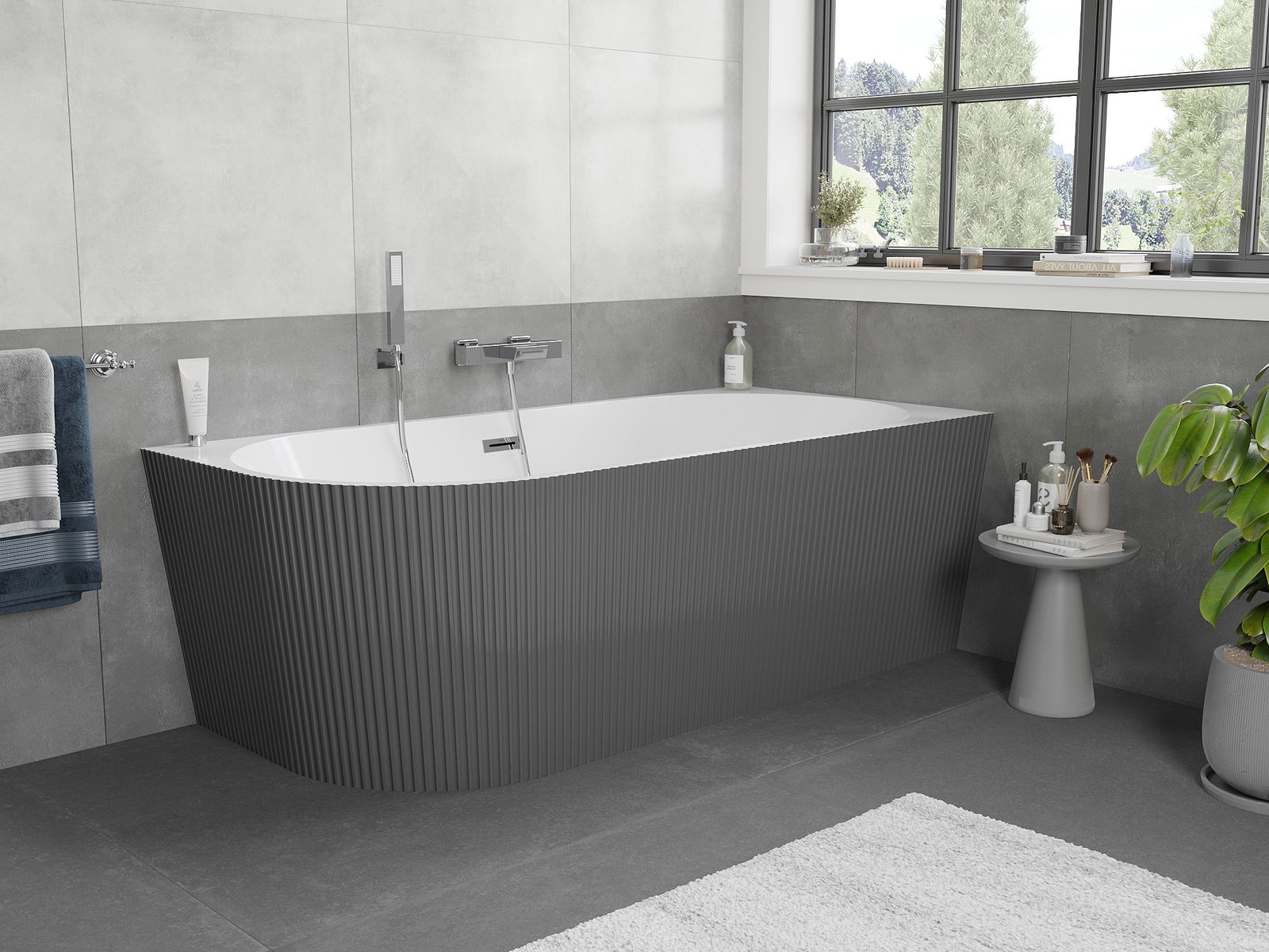 Mexen Silo itseisova kulmakylpyamme oikea, uurrettu 170 x 80 cm, valkoinen/harmaa, kromattu ylivuoto - 52891708062P-01