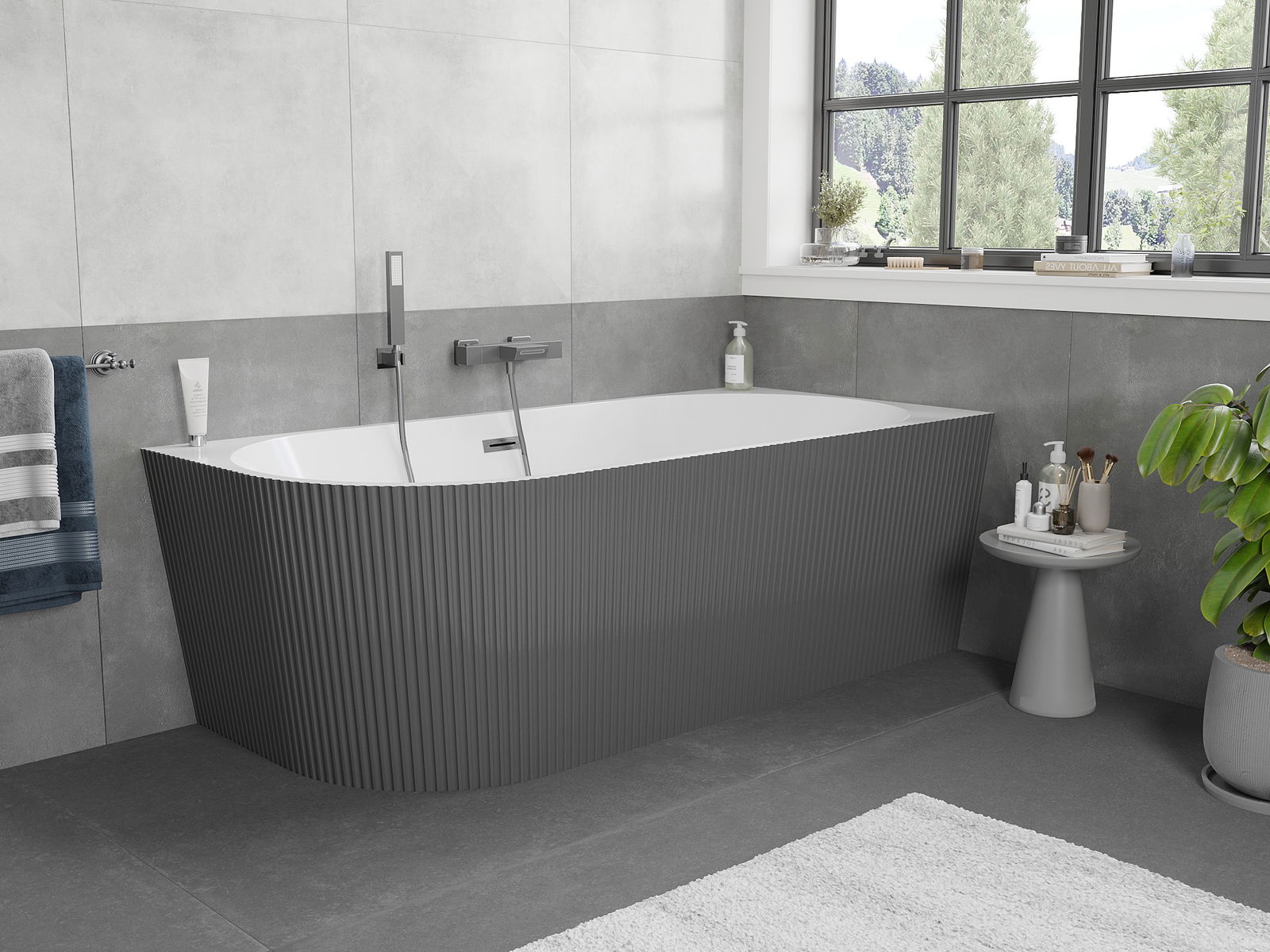Mexen Silo vapaasti seisova oikea kulma-amme, uritettu, 170 x 80 cm, valkoinen/harmaa, gun gray harjattu ylitysaukko