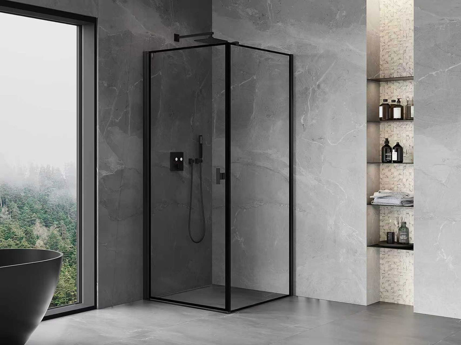 Mexen Rio neliönmuotoinen suihkukaappi 90 x 90 cm, läpinäkyvä, musta - 860-090-090-70-00