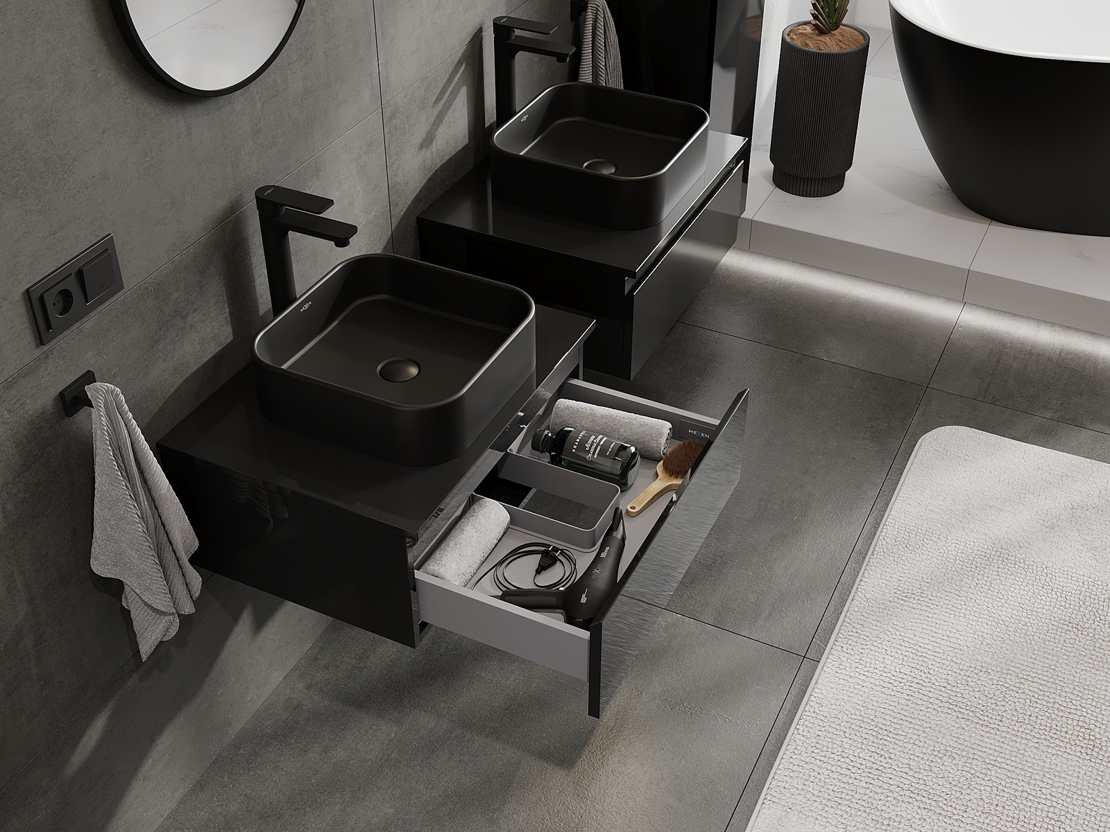 Mexen Orio kylpyhuoneen allaskaappi 60 cm, 1 laatikko, musta kiiltävä - 91A10-06023-1-BF70