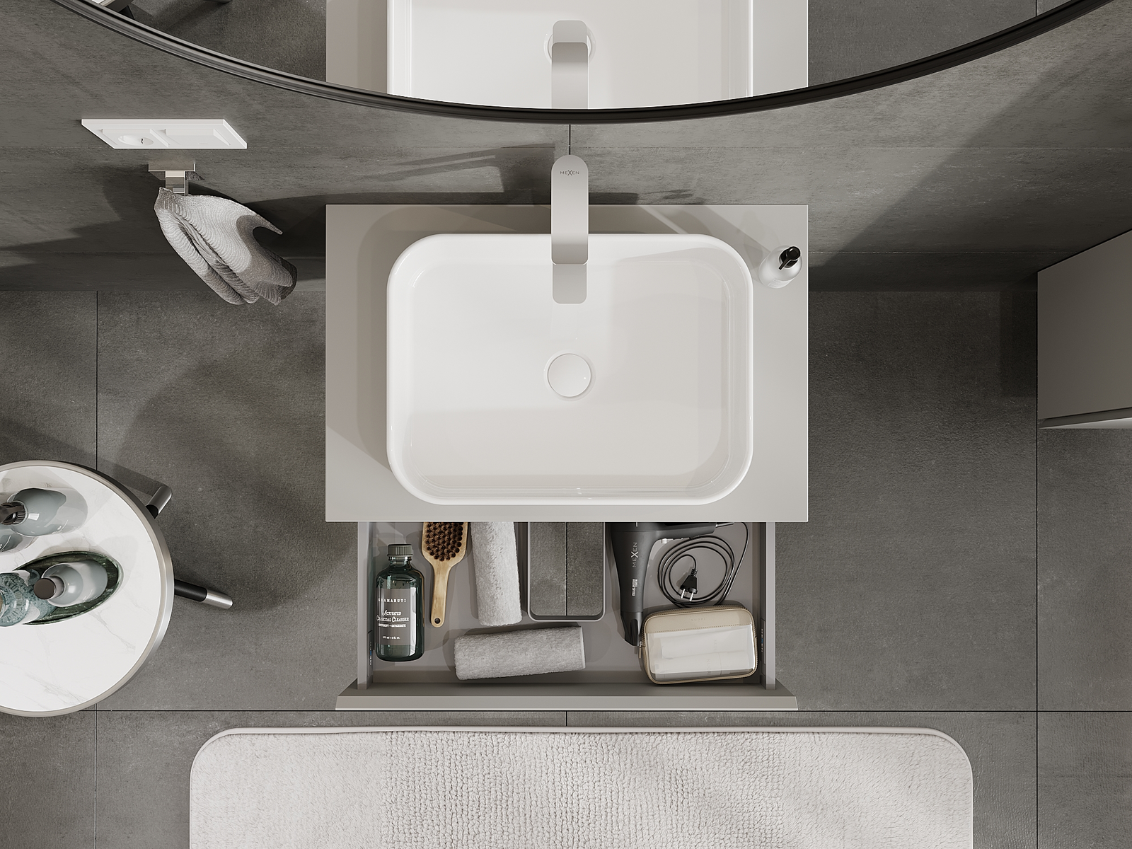 Mexen Orio kylpyhuonekaappi pesualtaan alla 70 cm, 1 laatikko, harmaa mattapinta - 91A10-07023-1-BF62
