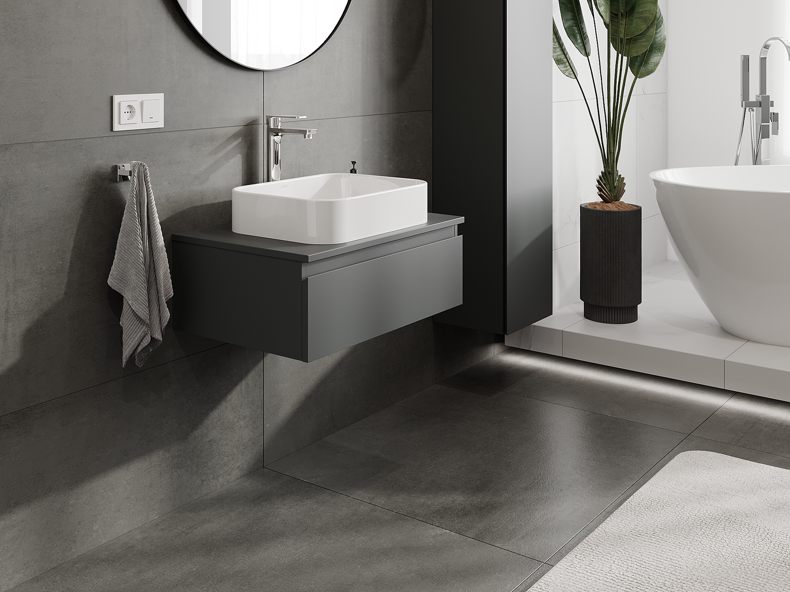 Kiinteiden materiaalien, tarkan työn ja nykyaikaisten teknologisten ratkaisujen ansiosta tuote tarjoaa käyttömukavuutta, kestävyyttä kosteutta ja lämpötilan muutoksia vastaan sekä elegantin ulkonäön, joka sopii erilaisiin kylpyhuonetyyleihin.