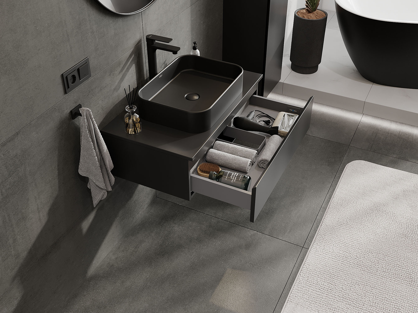 Mexen Orio kylpyhuoneen allaskaappi 80 cm, 1 laatikko, musta matta - 91A10-08023-1-BF71