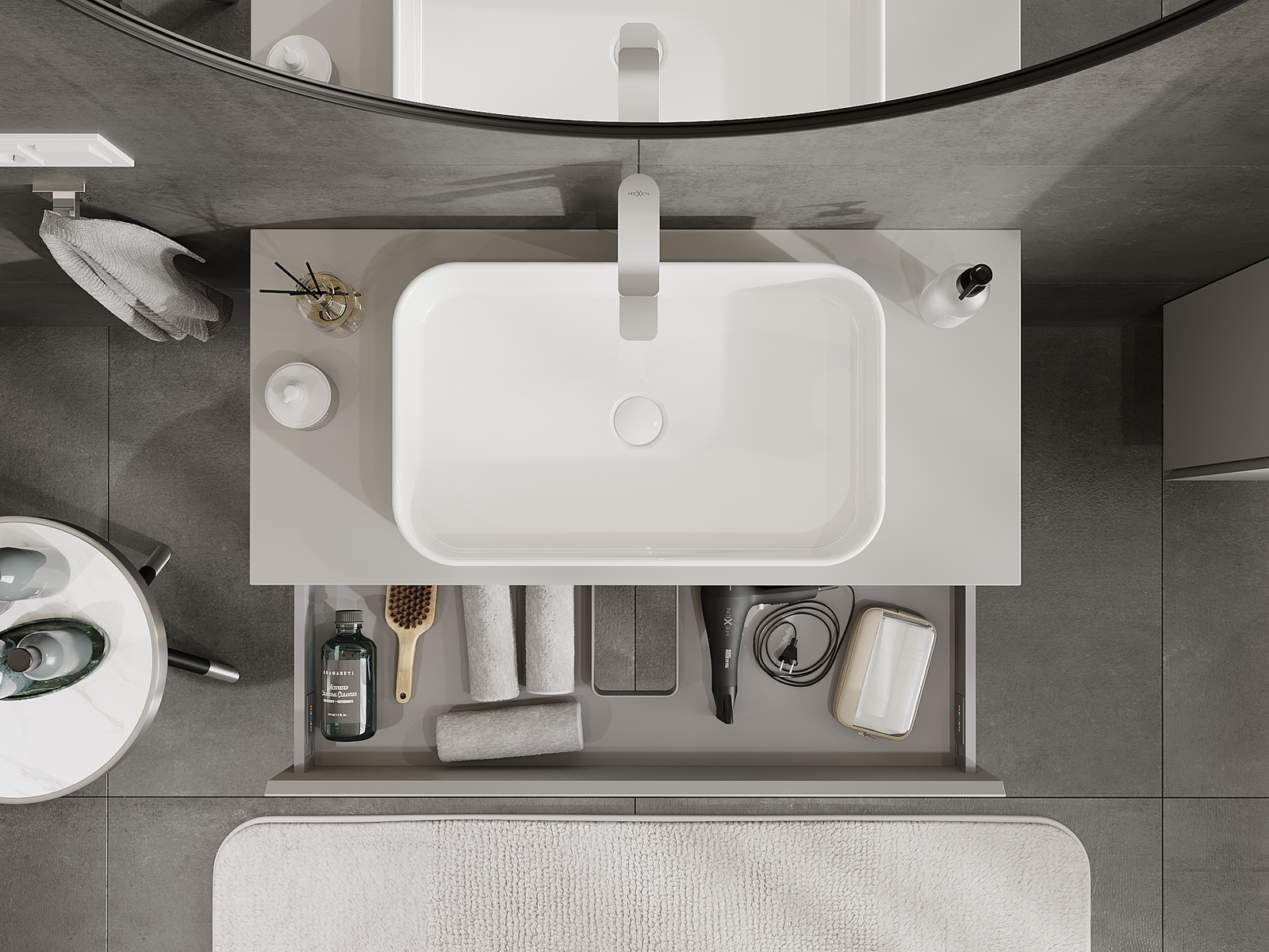 Mexen Orio kylpyhuonekaappi pesuallastason alle 100 cm, 1 laatikko, harmaa matta - 91A10-10023-1-BF62