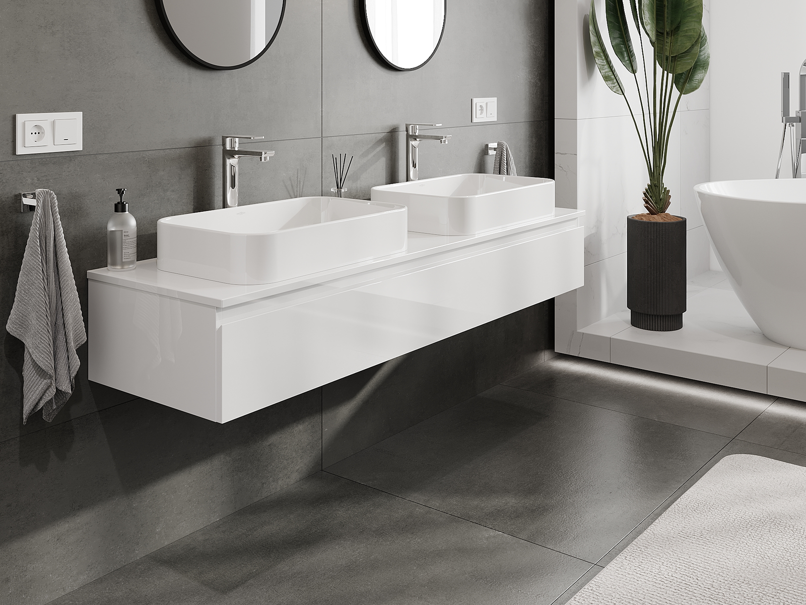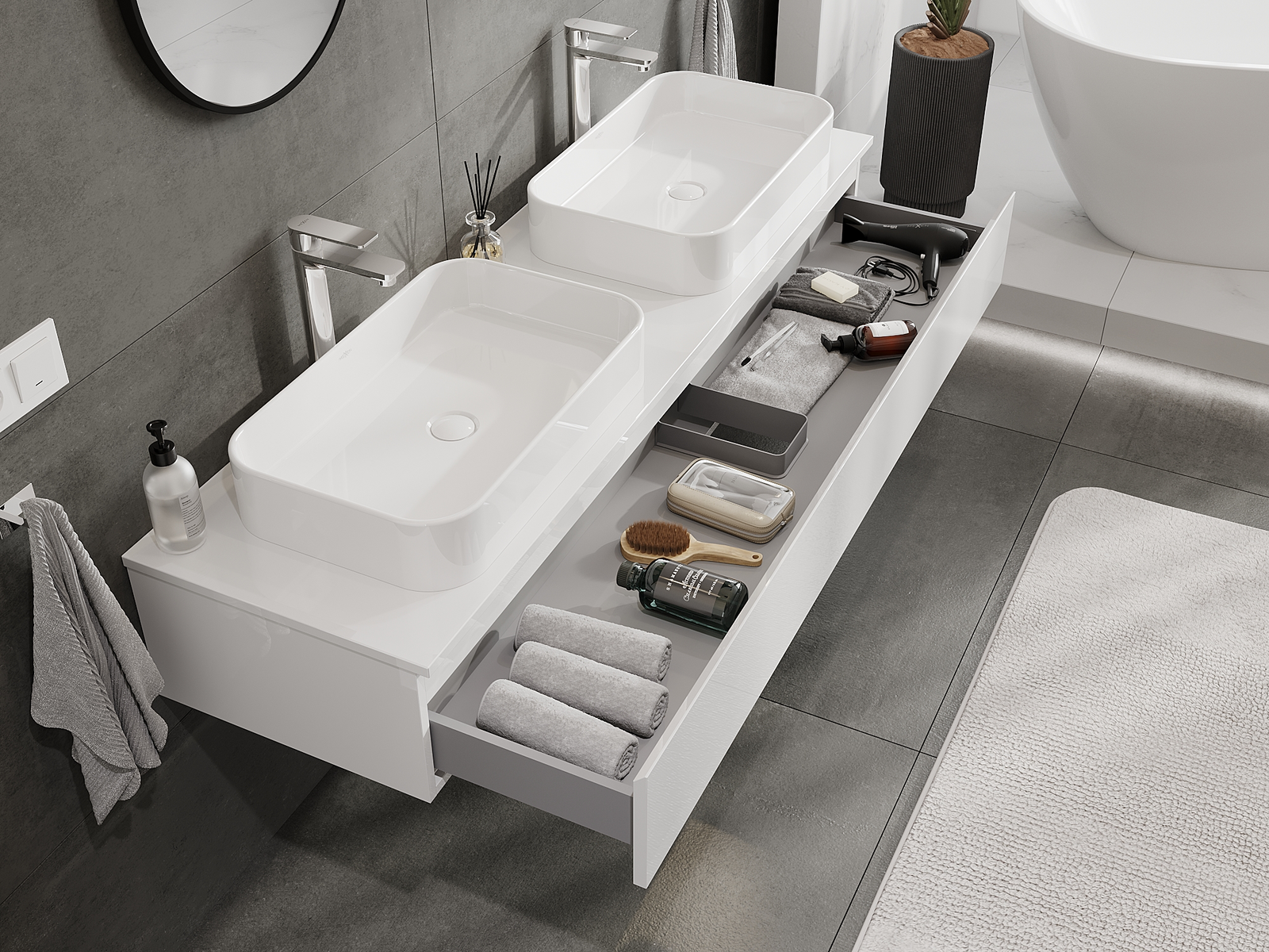 Modulaariset kylpyhuonekalusteemme voidaan yhdistää eri väriyhdistelminä, mikä mahdollistaa täydellisen personoinnin. Voit valita sekä ulkonäön että yksittäisten elementtien toiminnot, mikä mahdollistaa huonekalujen mukauttamisen omien tyylillisten ja käyttöön liittyvien mieltymysten mukaan.
