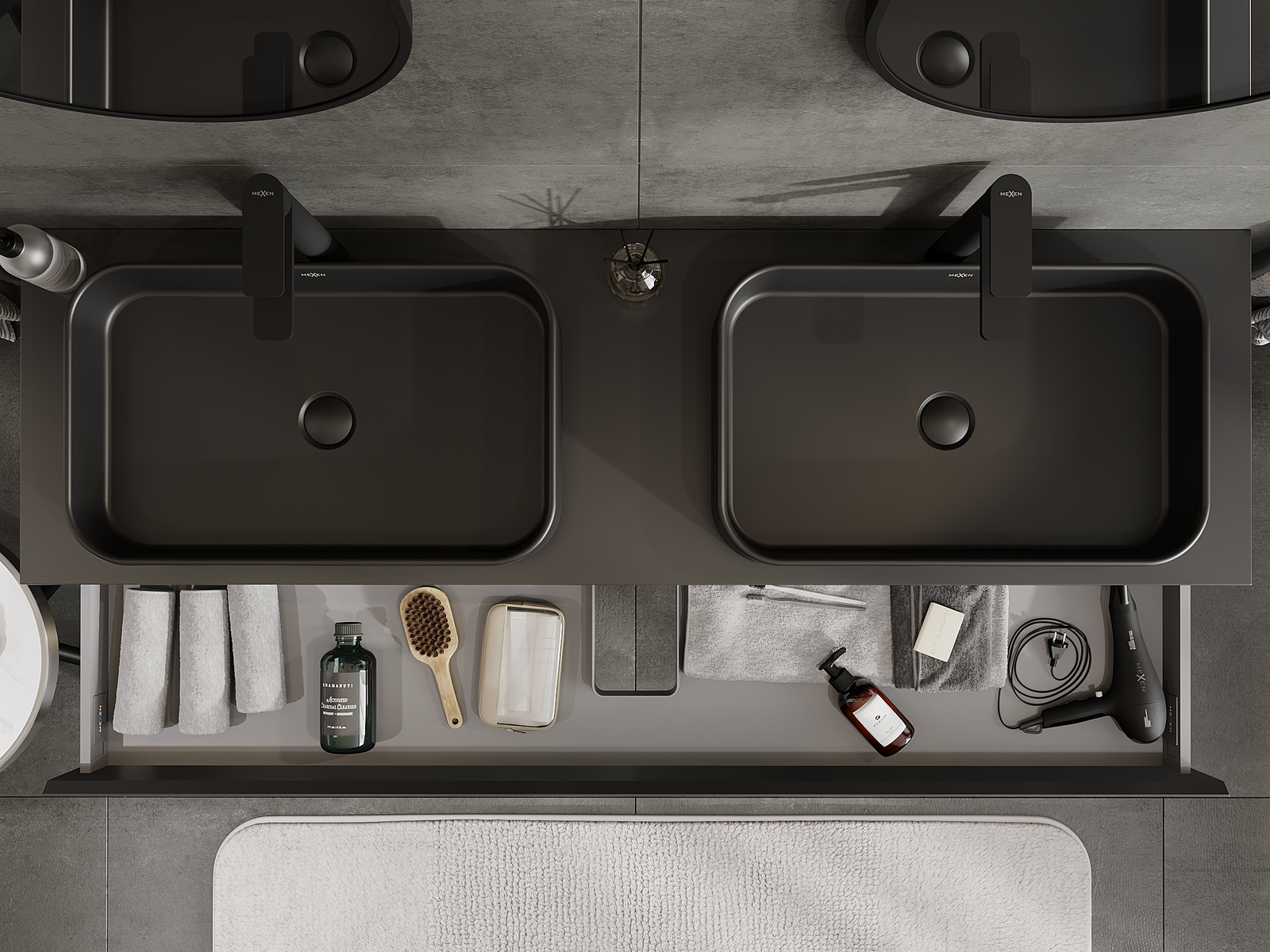 Mexen Orio 160 cm leveä kylpyhuonekaappi pesualtaan alle, 1 laatikko, musta matta - 91A10-16023-1-BF71