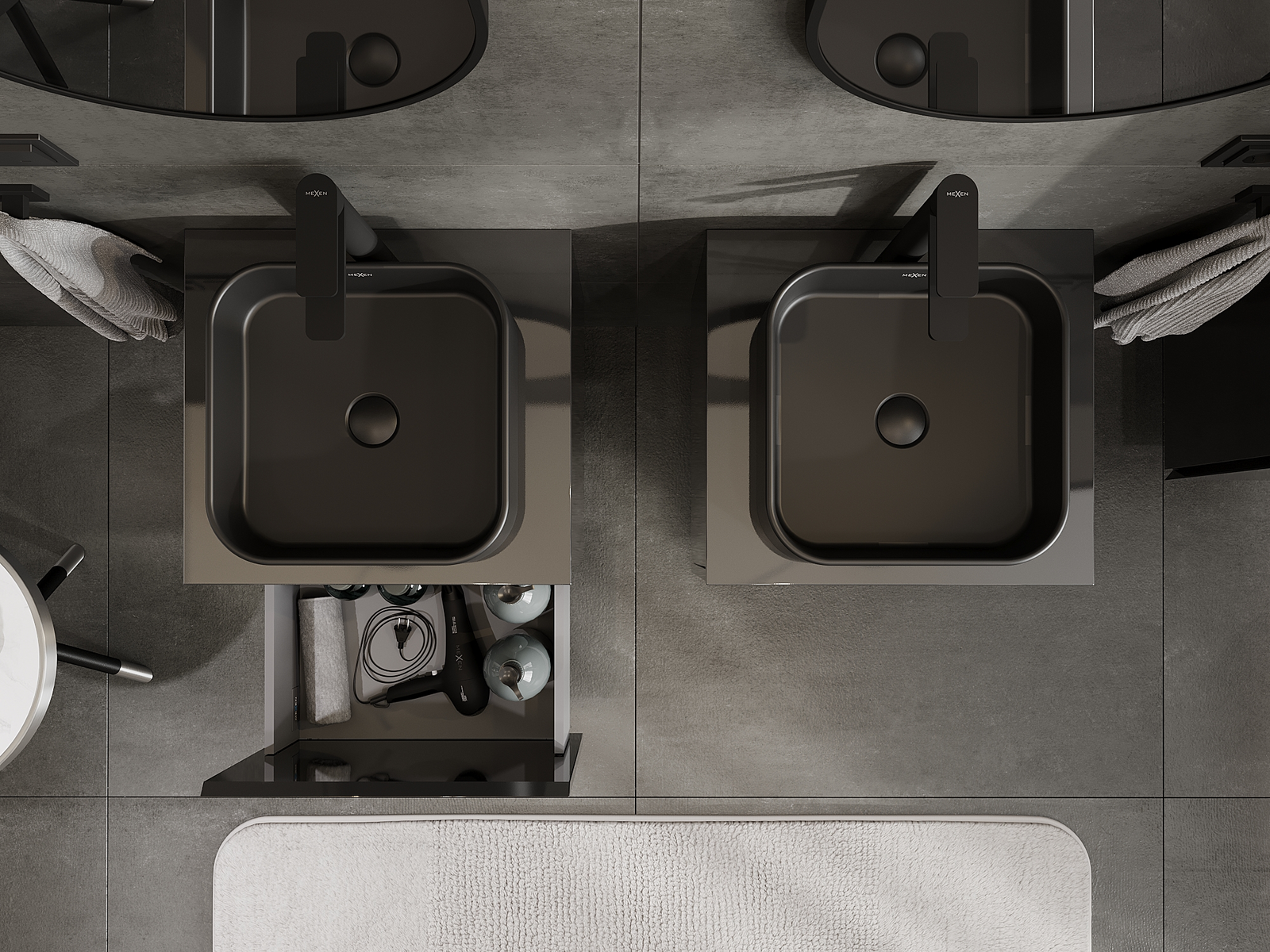 Mexen Orio kylpyhuonekaappi pesualtaan alle 50 cm, 1 laatikko, musta kiiltävä - 91A10-05047-1-BF70