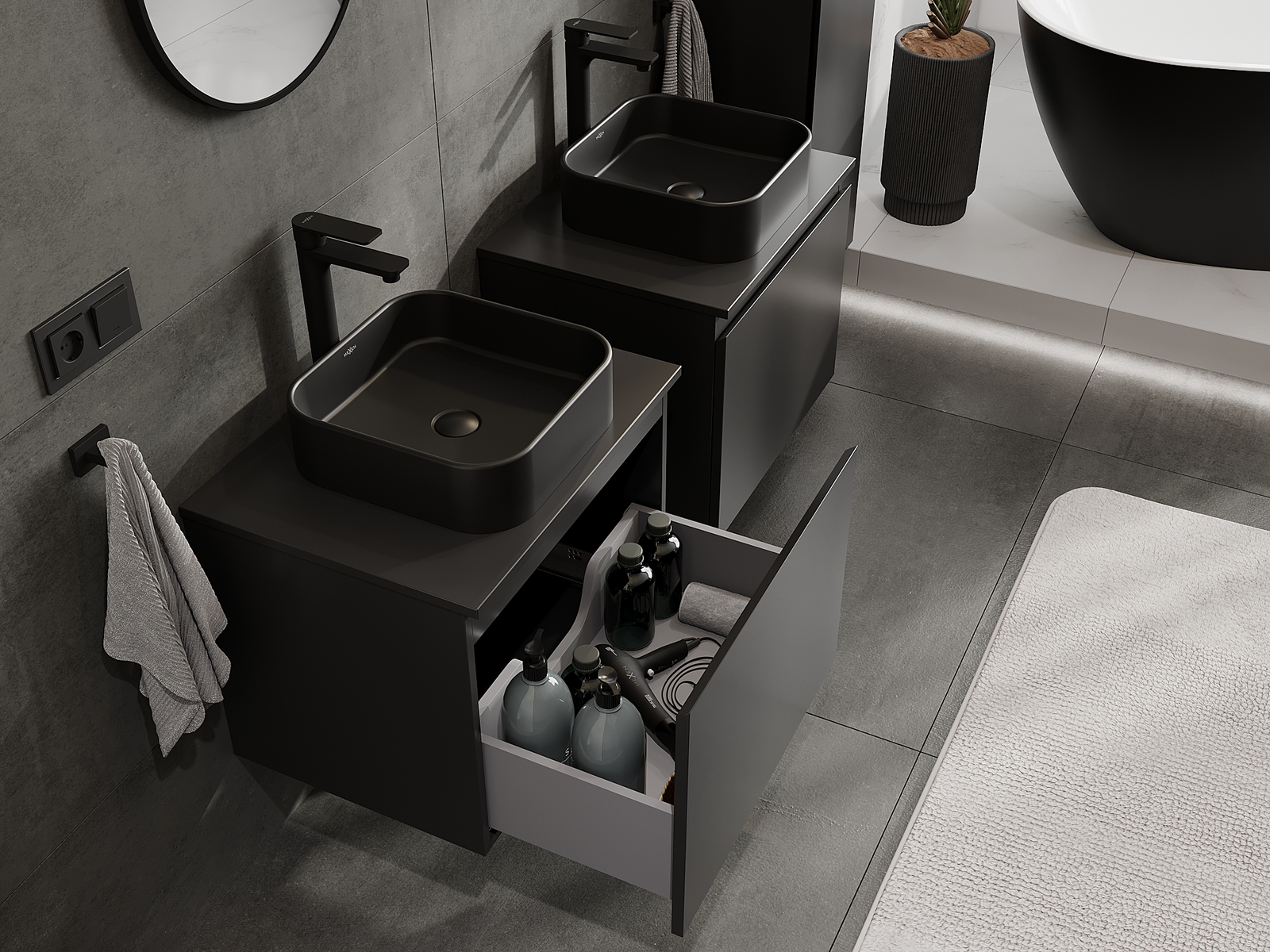 Modulaariset kylpyhuonekalusteemme voidaan yhdistää eri väriyhdistelminä, mikä mahdollistaa täydellisen personoinnin. Voit valita sekä ulkonäön että yksittäisten elementtien toiminnot, mikä mahdollistaa huonekalujen mukauttamisen omien tyylillisten ja käyttöön liittyvien mieltymysten mukaan.