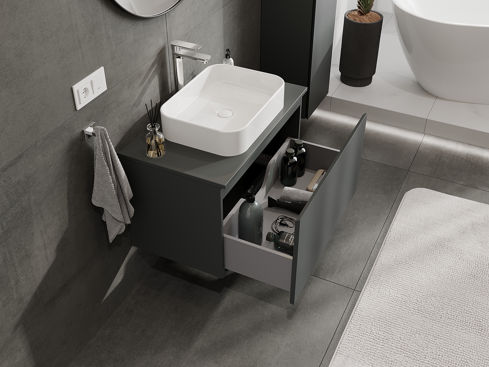 Mexen Orio kylpyhuoneen allaskaappi 80 cm, 1 laatikko, matta grafiitti - 91A10-08047-1-BF66