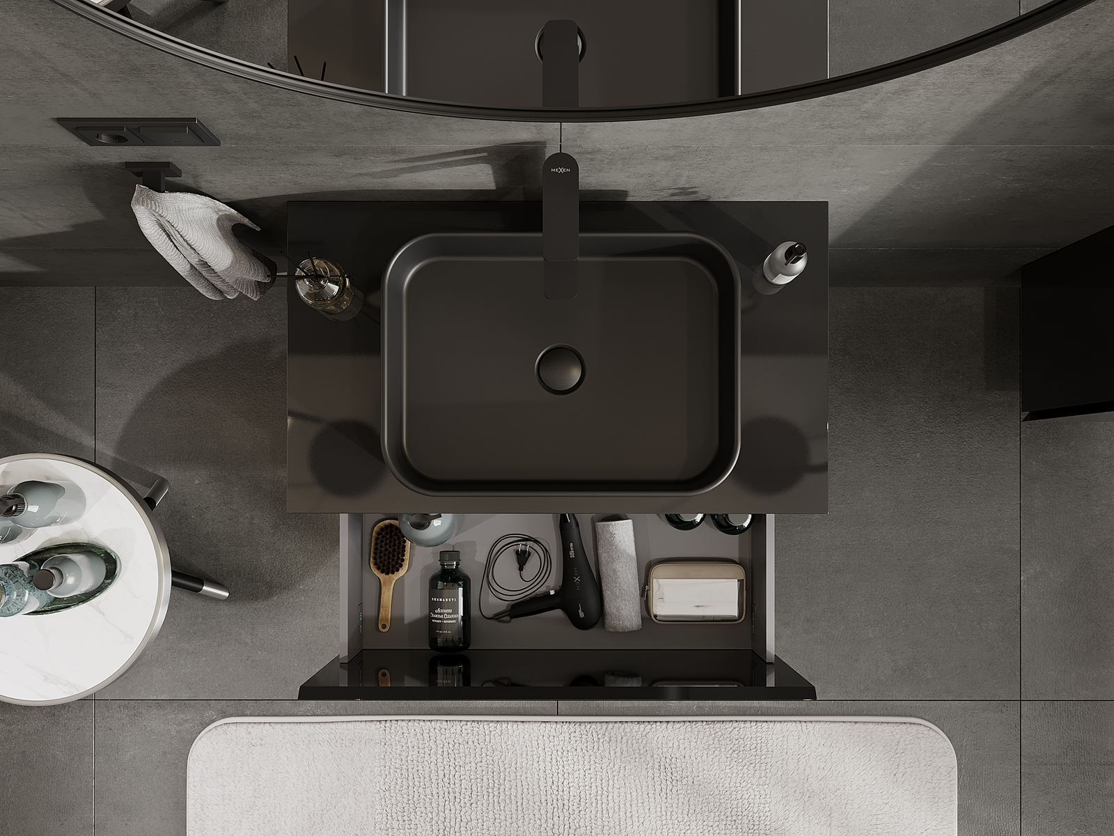 Mexen Orio kylpyhuonekaappi pesualtaan alle 80 cm, 1 laatikko, musta kiiltävä - 91A10-08047-1-BF70