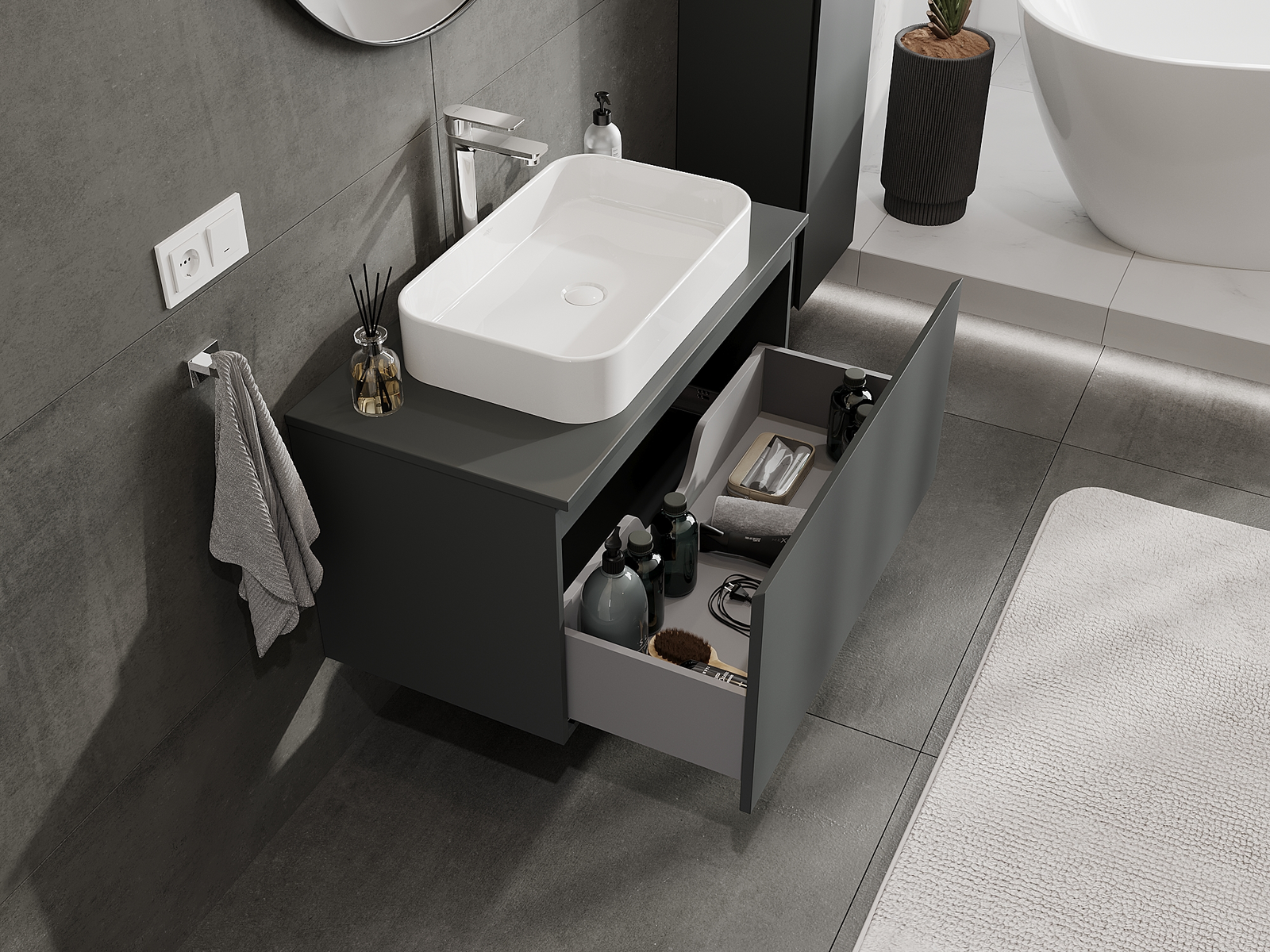 Mexen Orio kylpyhuonekaappi pesualtaan alle 90 cm, 1 laatikko, grafiitinharmaa matta - 91A10-09047-1-BF66