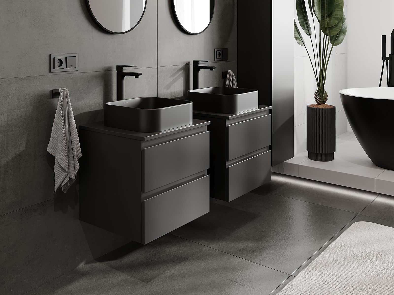 Modulaariset kylpyhuonekalusteemme voidaan yhdistää eri väriyhdistelminä, mikä mahdollistaa täydellisen personoinnin. Voit valita sekä ulkonäön että yksittäisten elementtien toiminnot, mikä mahdollistaa huonekalujen mukauttamisen omien tyylillisten ja käyttöön liittyvien mieltymysten mukaan.