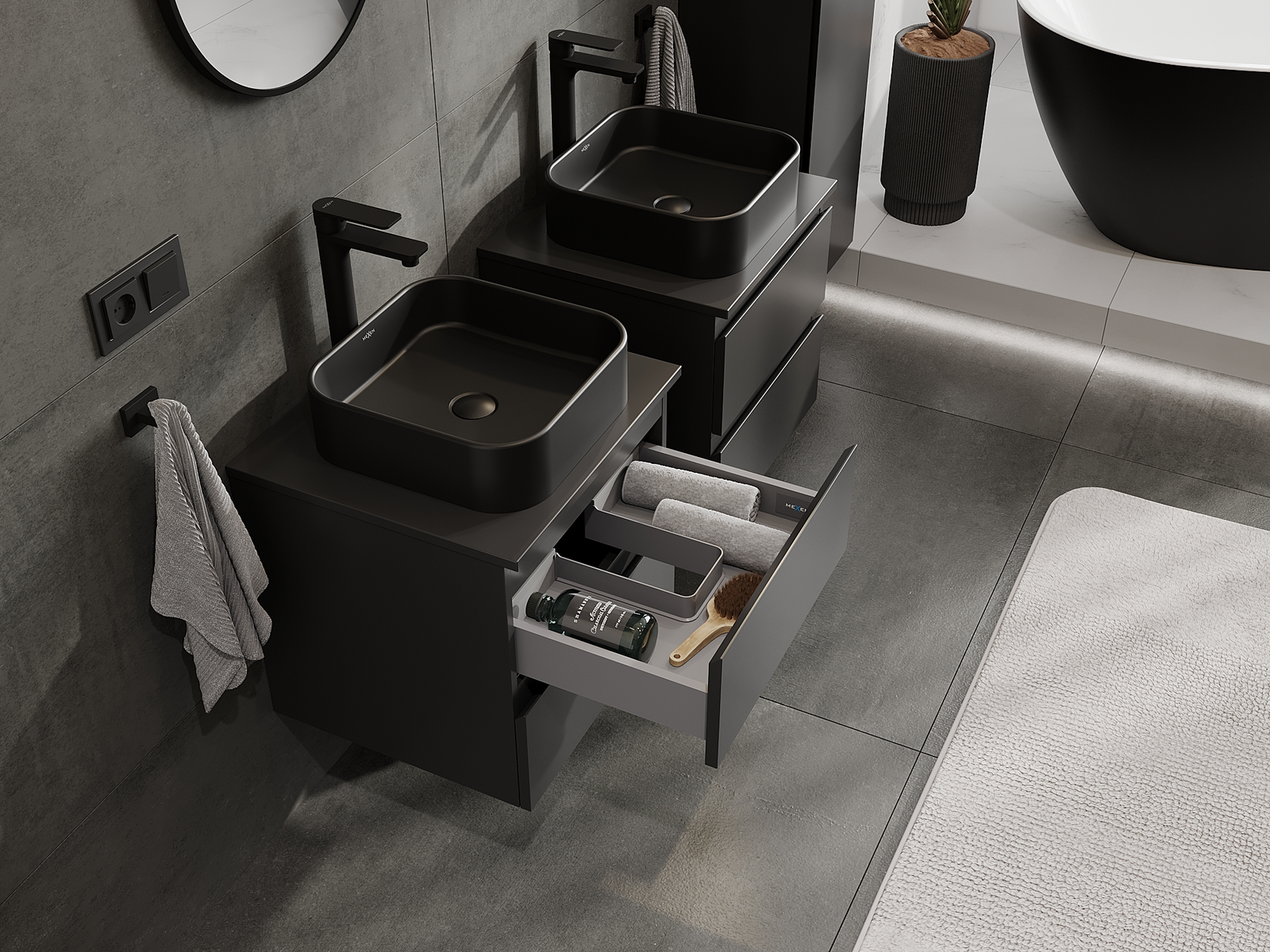 Mexen Orio Kylpyhuonekaappi pesualtaan alle 50 cm, 2 laatikkoa, musta matta - 91A10-05047-2-BFF71