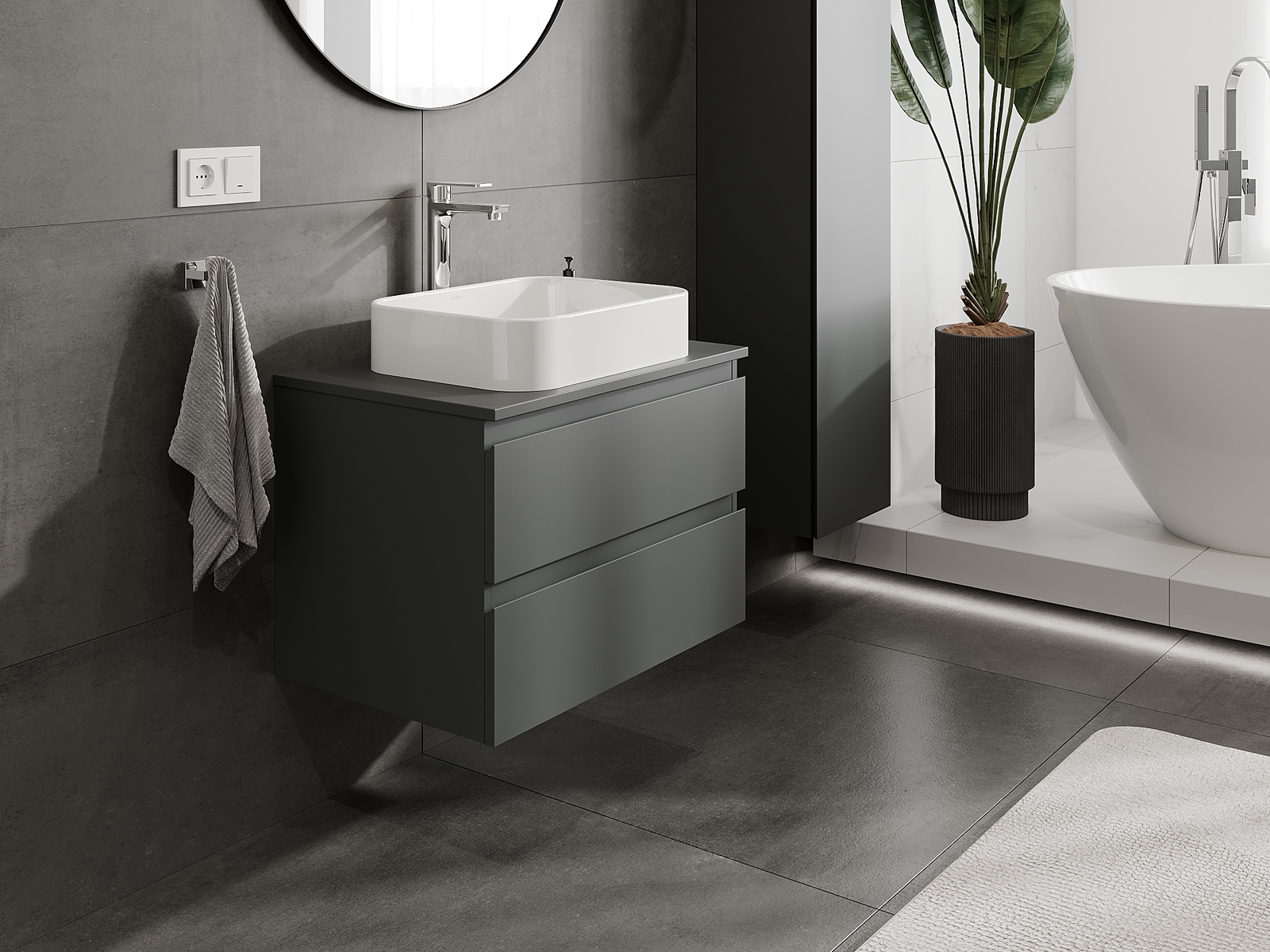 Modulaariset kylpyhuonekalusteemme voidaan yhdistää eri väriyhdistelminä, mikä mahdollistaa täydellisen personoinnin. Voit valita sekä ulkonäön että yksittäisten elementtien toiminnot, mikä mahdollistaa huonekalujen mukauttamisen omien tyylillisten ja käyttöön liittyvien mieltymysten mukaan.