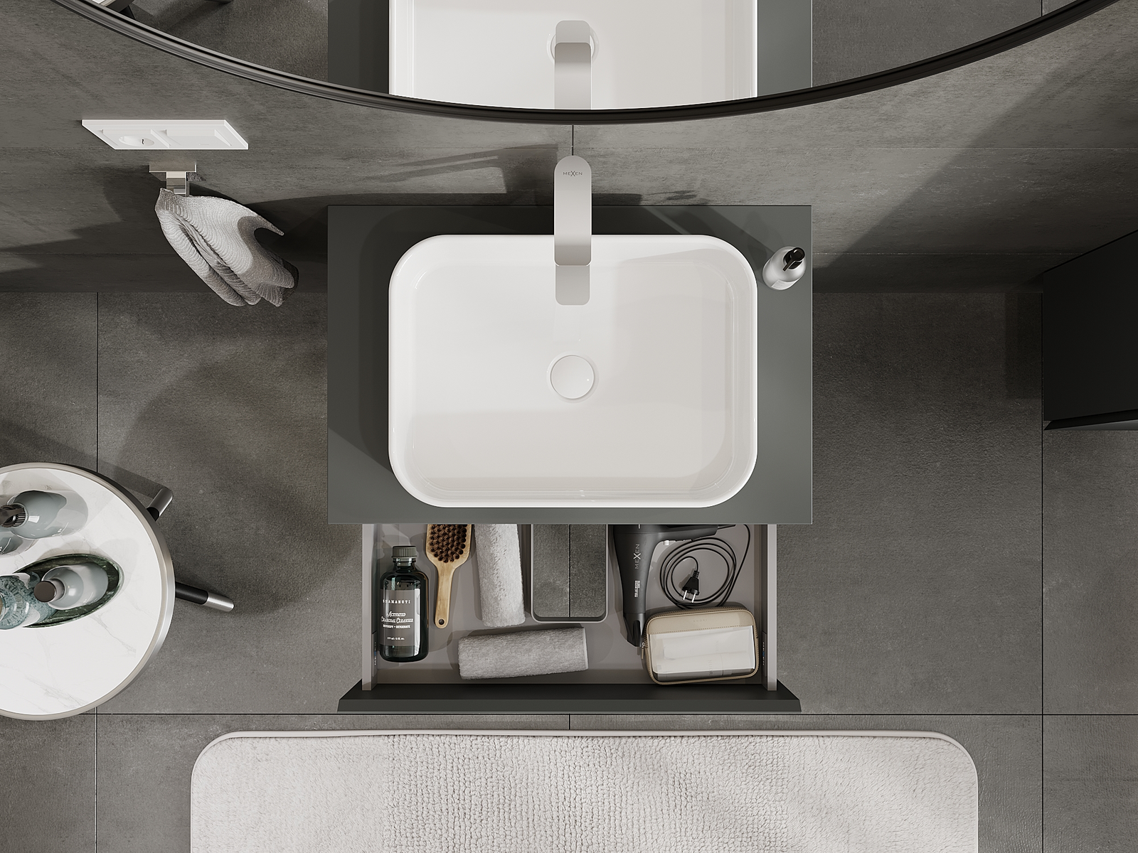 Mexen Orio kylpyhuonekaappi pesualtaan alla 70 cm, 2 laatikkoa, matta grafiitti - 91A10-07047-2-BFF66