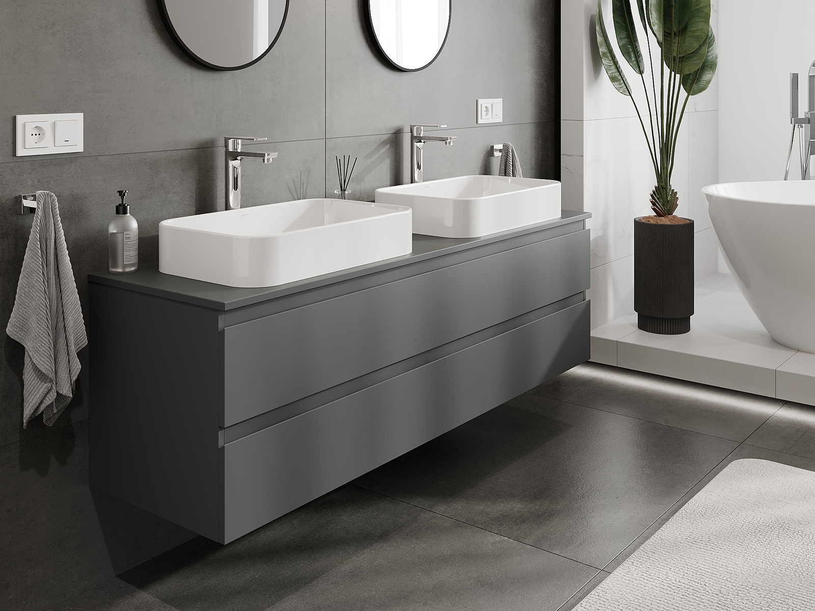 Mexen Orio kylpyhuonekaappi pesualtaan alle, 160 cm, 2 laatikkoa, matta grafiitti - 91A10-16047-2-BFF66