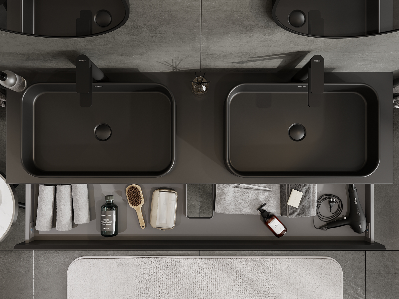 Mexen Orio musta matta kylpyhuonekaappi pesualtaalle 160 cm, 2 laatikkoa - 91A10-16047-2-BFF71
