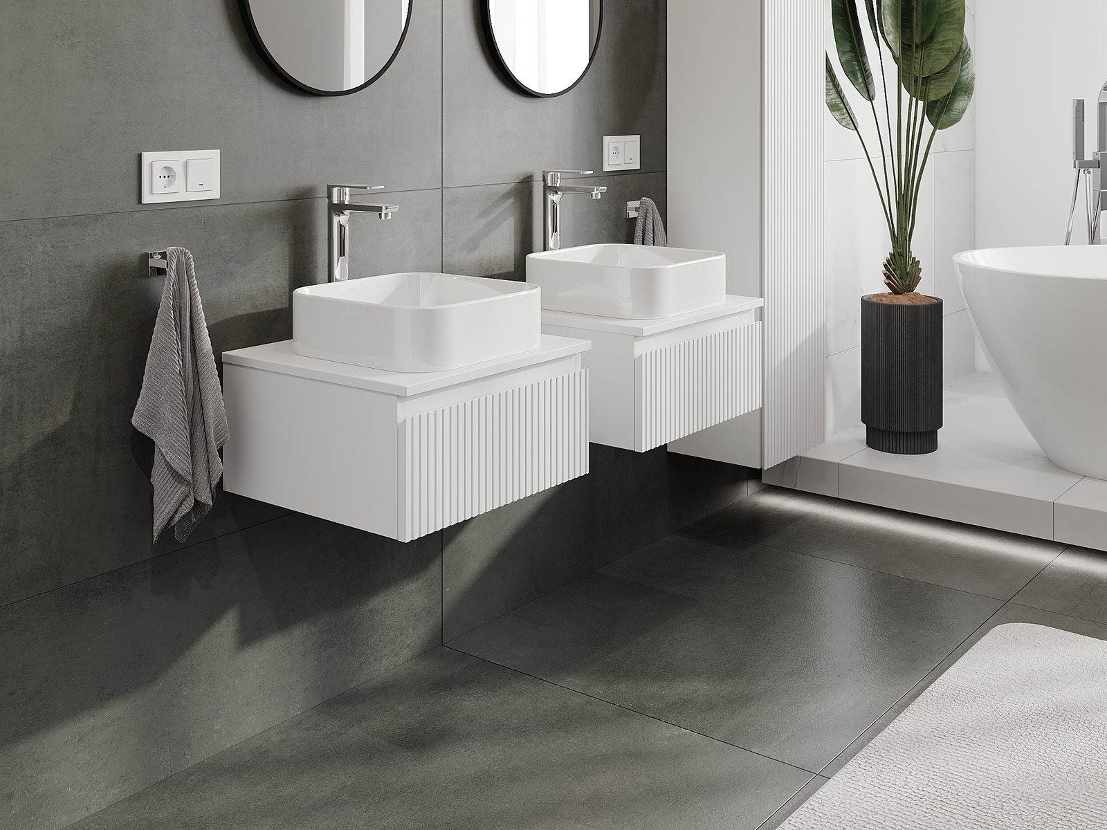 Modulaariset kylpyhuonekalusteemme voidaan yhdistää eri väriyhdistelminä, mikä mahdollistaa täydellisen personoinnin. Voit valita sekä ulkonäön että yksittäisten elementtien toiminnot, mikä mahdollistaa huonekalujen mukauttamisen omien tyylillisten ja käyttöön liittyvien mieltymysten mukaan.