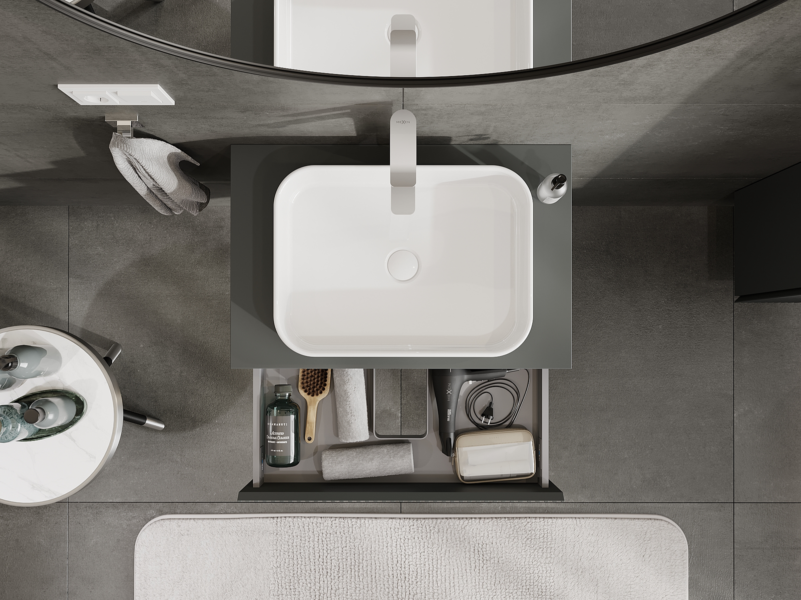 Mexen Rivel kylpyhuonekaappi pesualtaan alla 70 cm, 1 laatikko, uritettu, mattagraphite - 91A20-07023-1-BF66